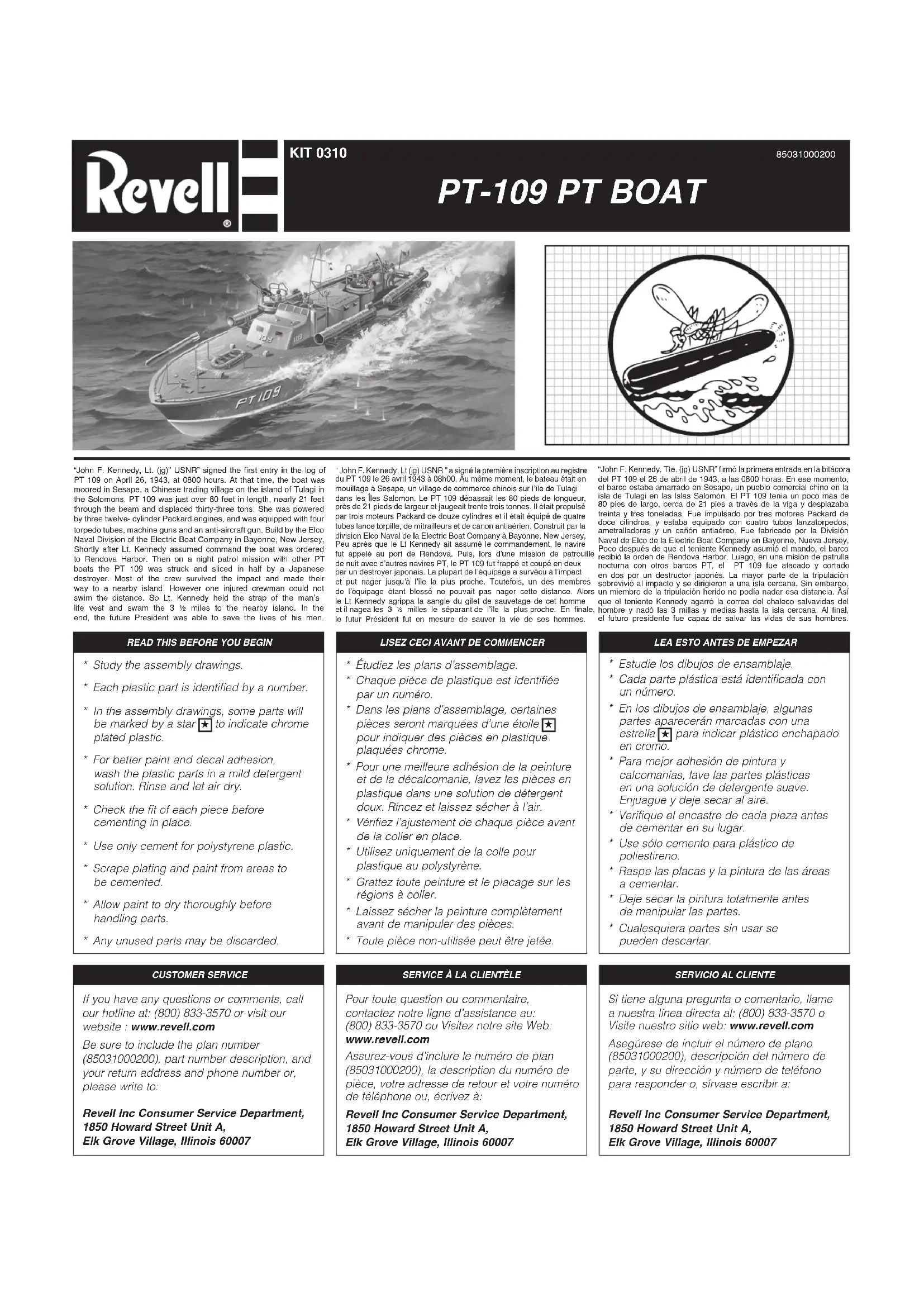 MODE D'EMPLOI PT109 P.T. Boat Plastic Model Kit Revell