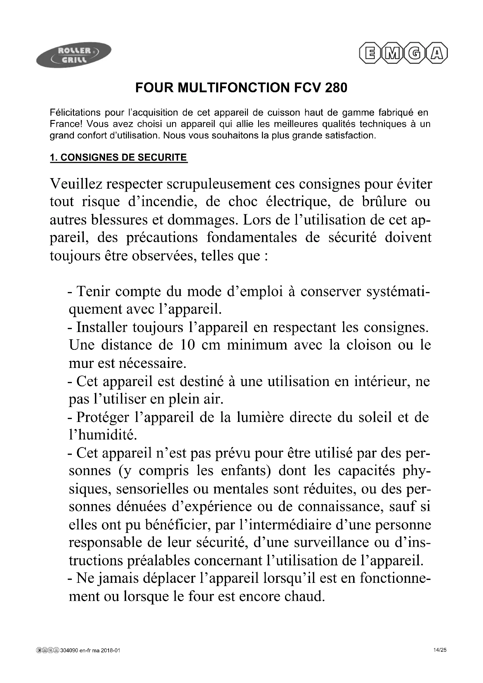 MODE D'EMPLOI FCV 280 ROLLER GRILL