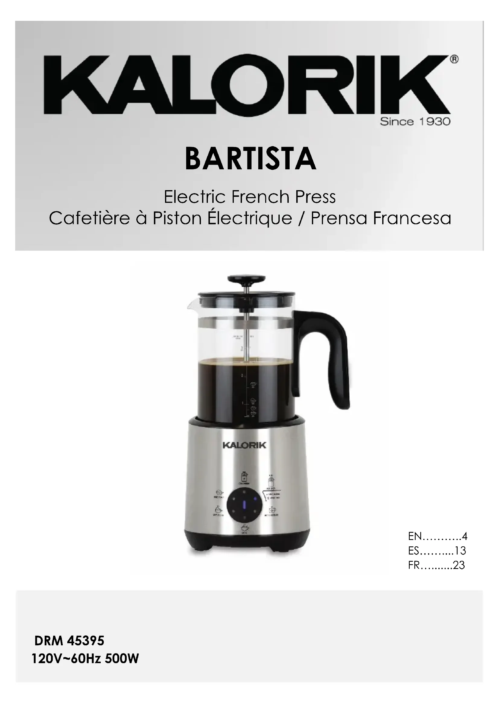 Retrouvez gratuitement la notice de l'appareil DRM 45395 SS KALORIK au format PDF.