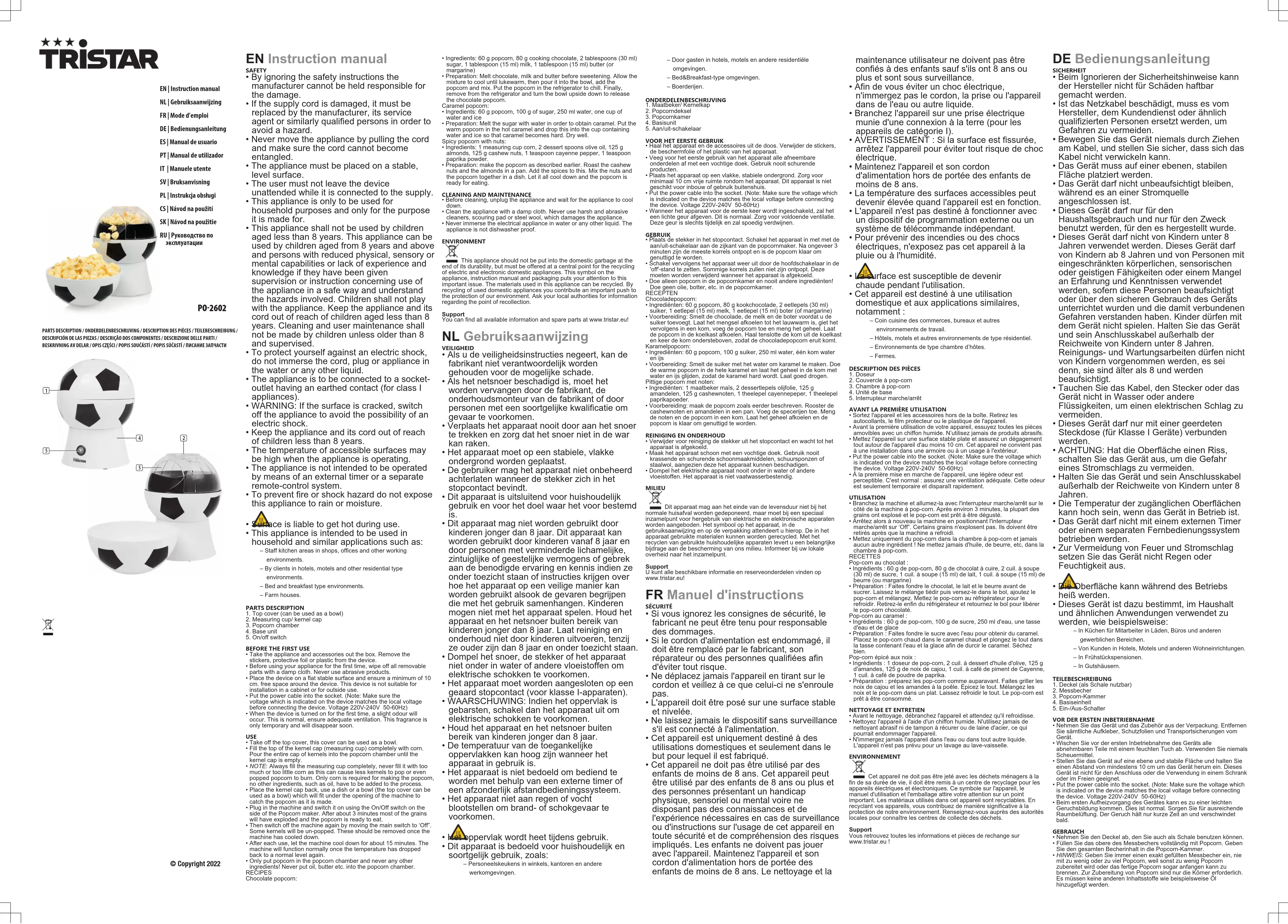 Retrouvez gratuitement la notice de l'appareil PO2602 TRISTAR au format PDF.