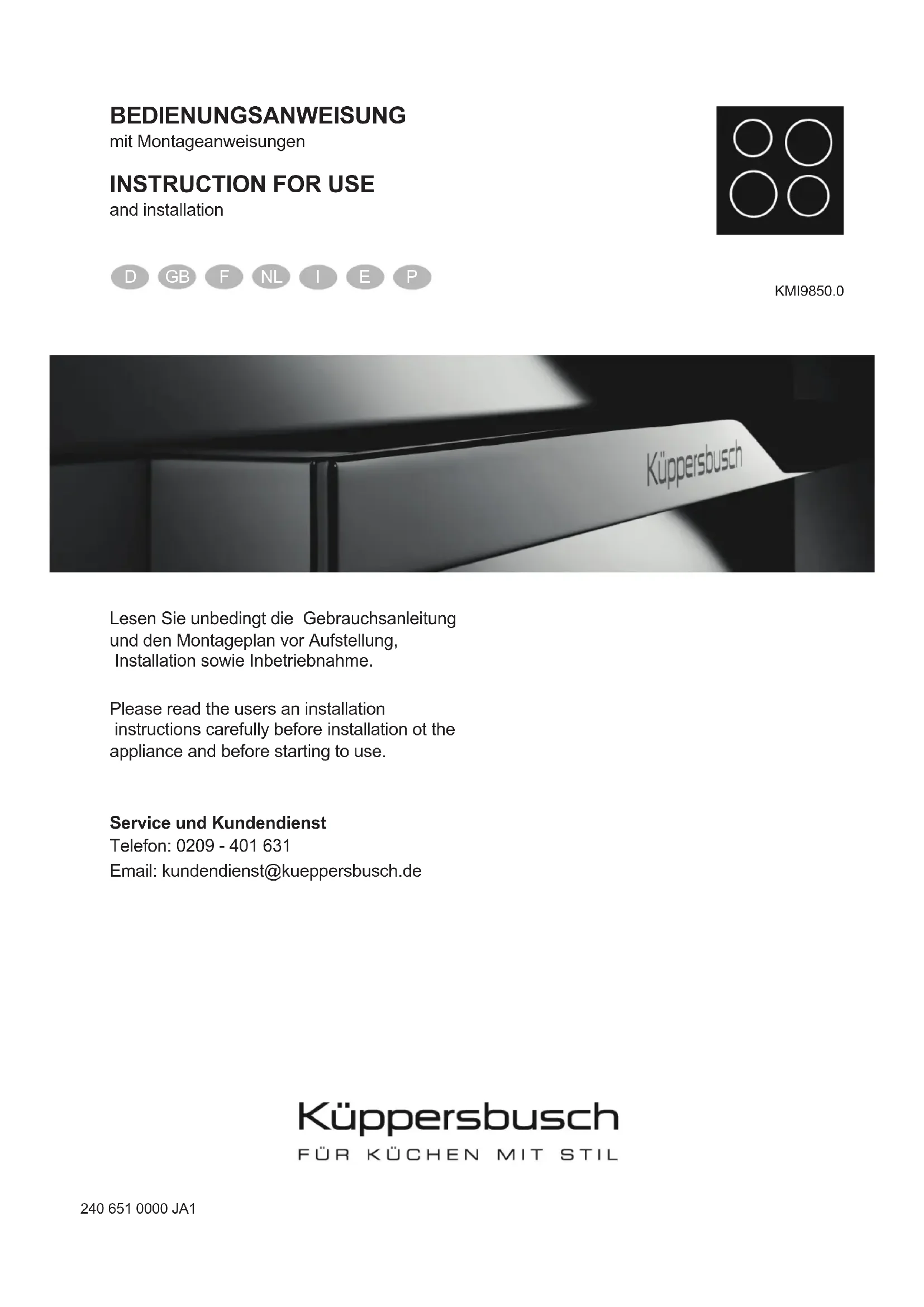 KMI9850.0SE - Cuisinière Küppersbusch - Notice d'utilisation et mode d'emploi gratuit