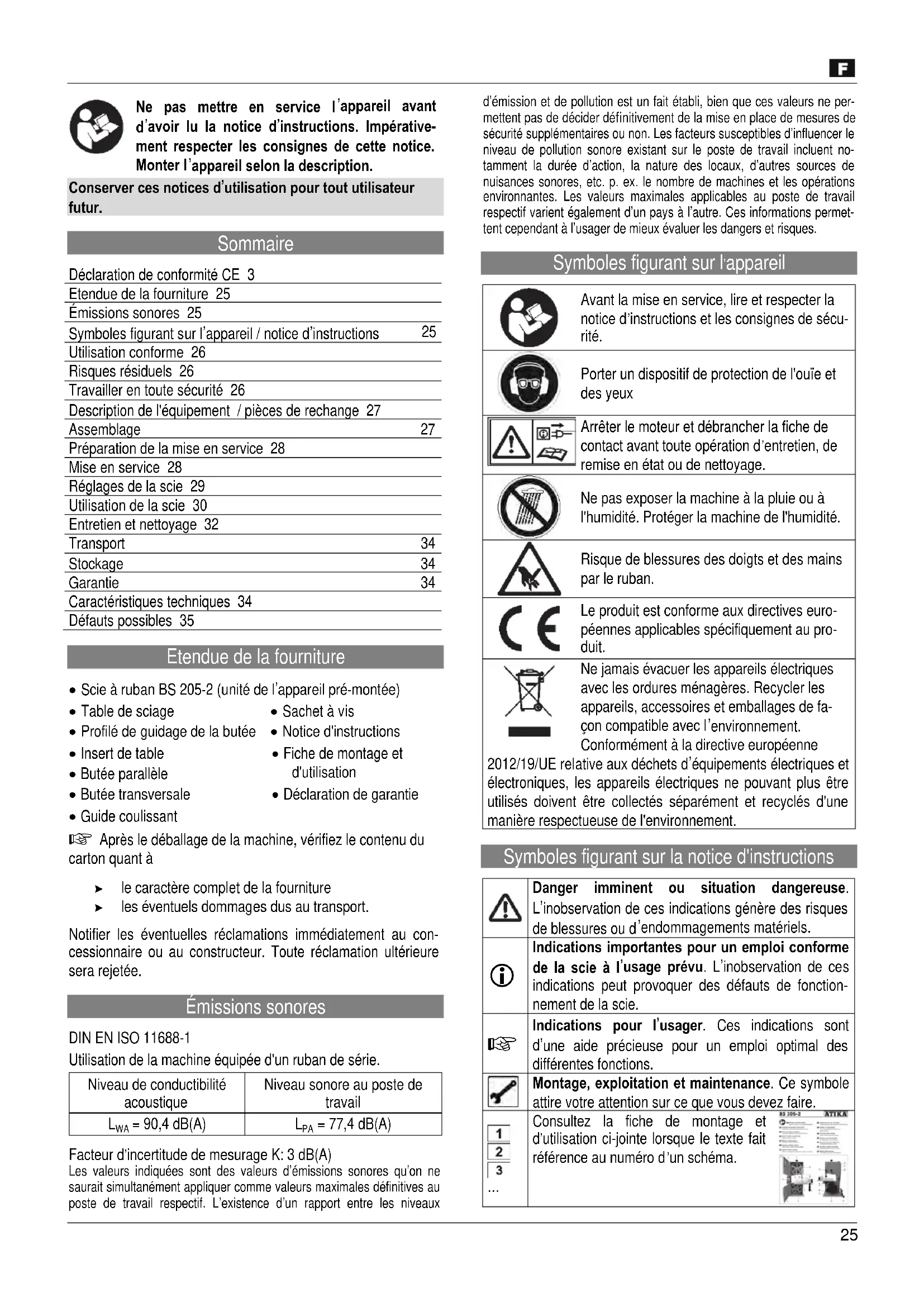 BS 2052 - Scie ATIKA - Notice d'utilisation et mode d'emploi gratuit