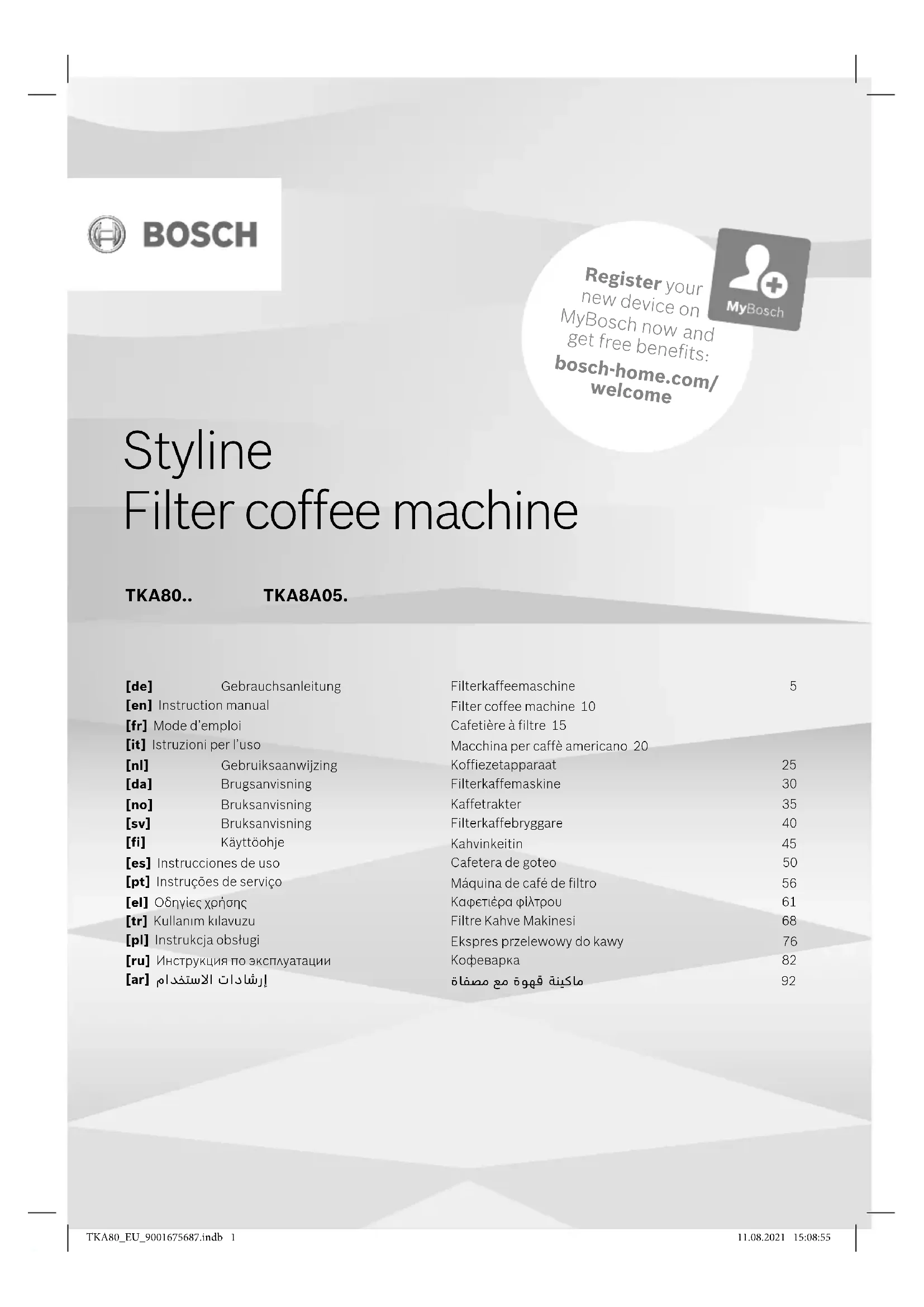 Retrouvez gratuitement la notice de l'appareil TKA8A054 BOSCH au format PDF.