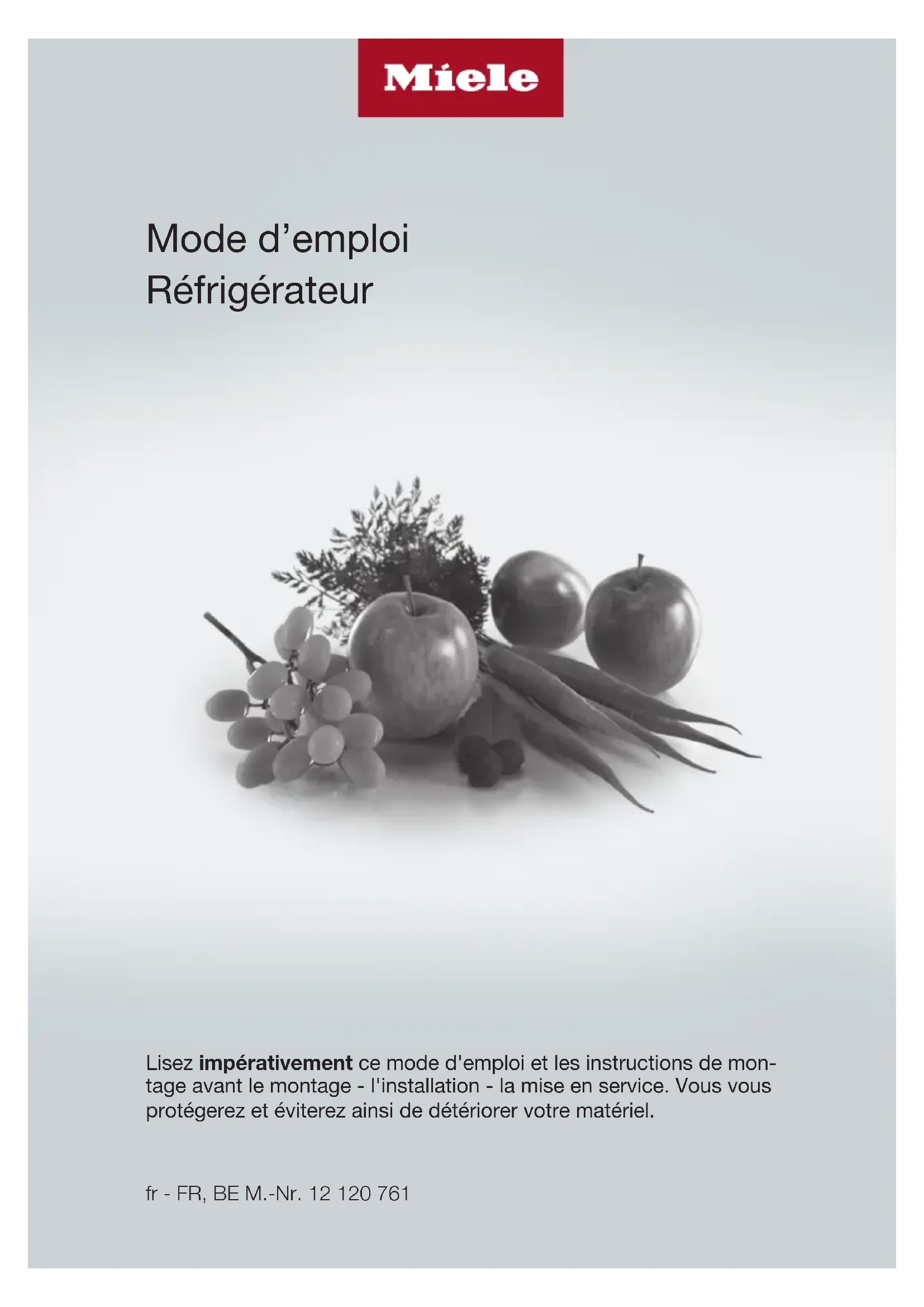 Mode d’emploi Réfrigérateur Lisez impérativement ce mode d'emploi et les instructions de mon- tage avant le montage - l'installation - la mise en service. Vous vous protégerez et éviterez ainsi de détériorer votre matériel. fr - FR, BE M.-Nr. 12 120 761Table des matières