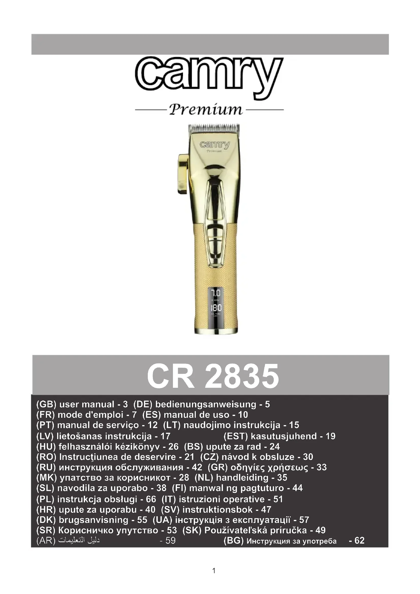 Téléchargez la notice de votre Tondeuse au format PDF gratuitement ! Retrouvez votre notice CR 2835 - CAMRY et reprennez votre appareil électronique en main. Sur cette page sont publiés tous les documents nécessaires à l'utilisation de votre appareil CR 2835 de la marque CAMRY.