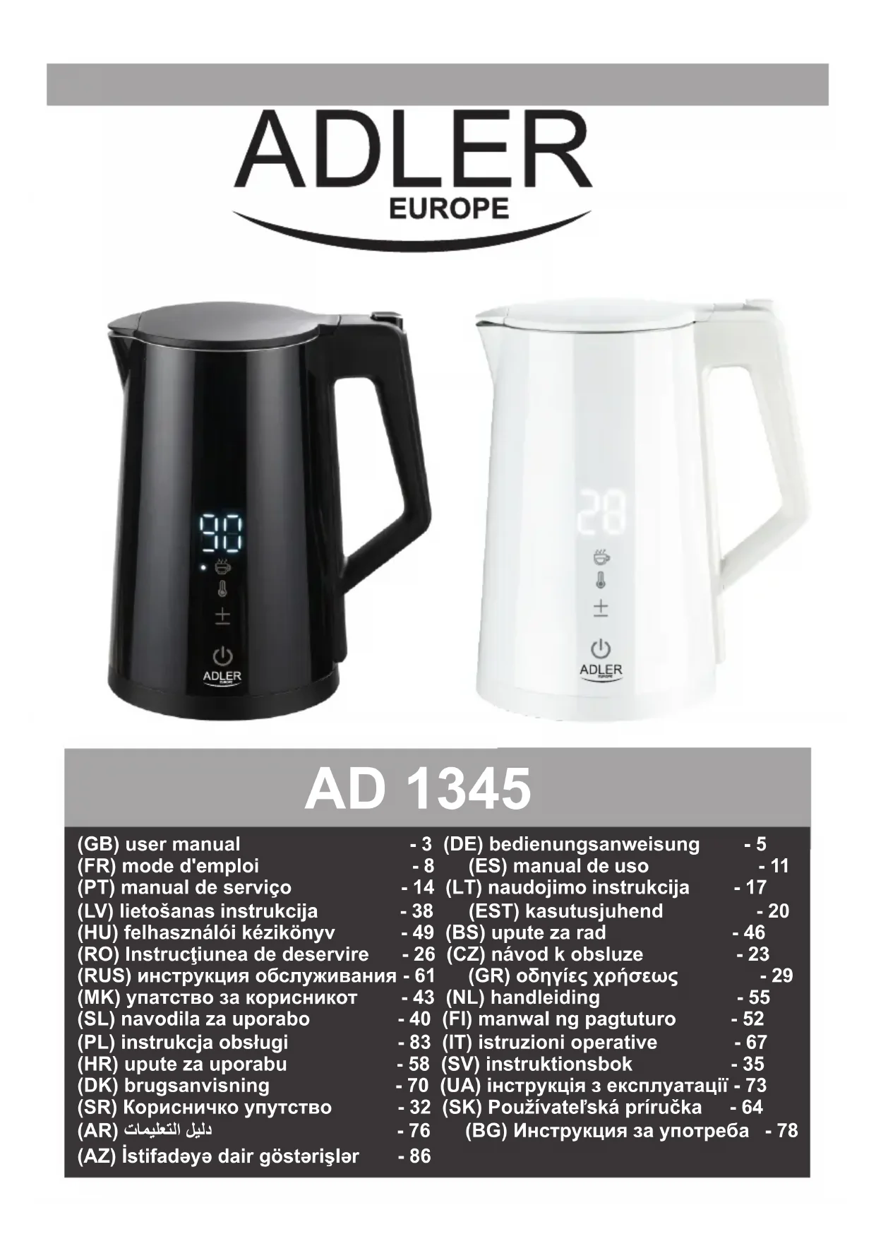 AD 1345 - Bouilloire ADLER - Notice d'utilisation et mode d'emploi gratuit