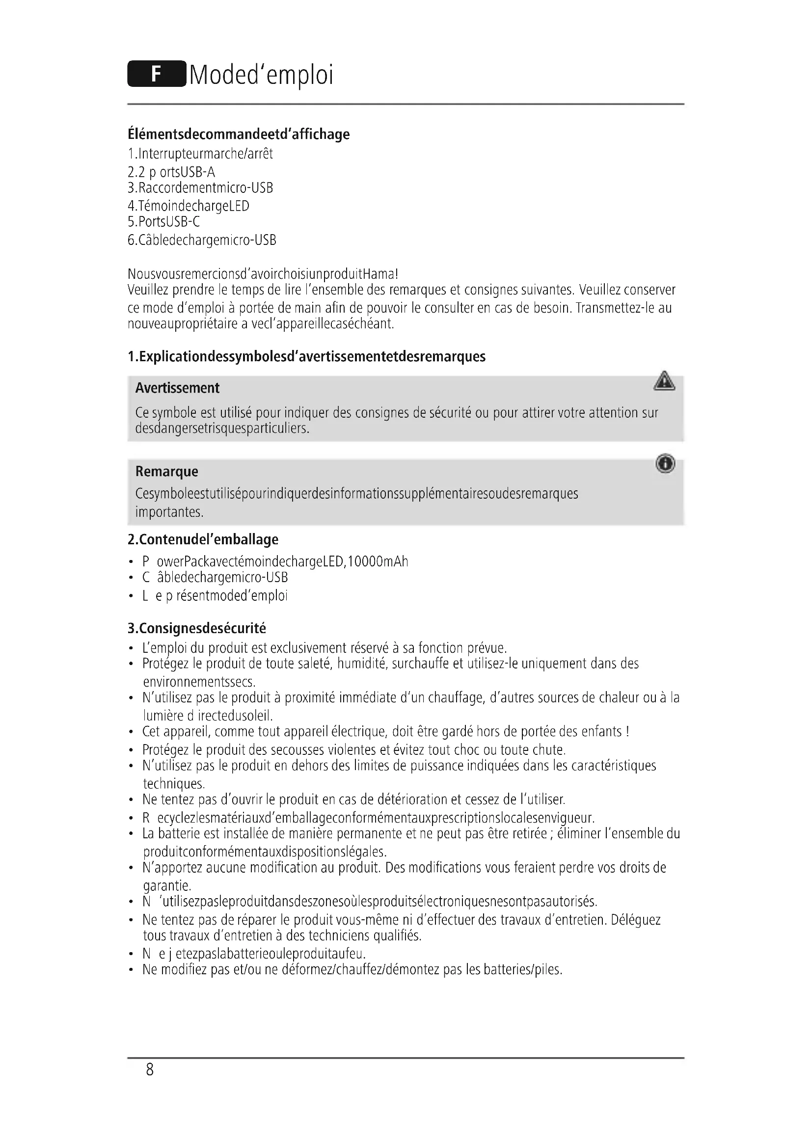 LED10S - Batterie portable HAMA - Notice d'utilisation et mode d'emploi gratuit