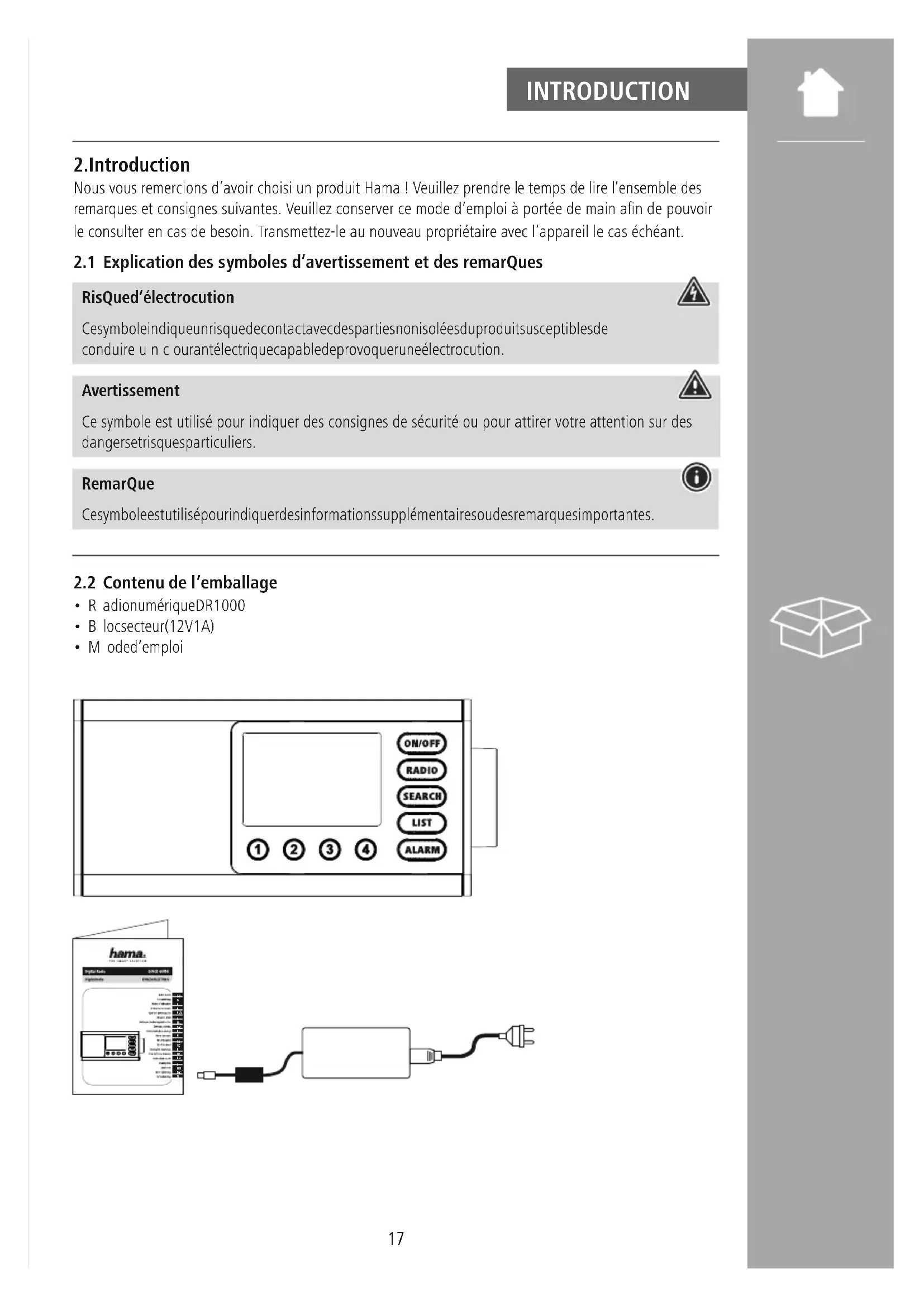 DR1000 - Radio HAMA - Notice d'utilisation et mode d'emploi gratuit