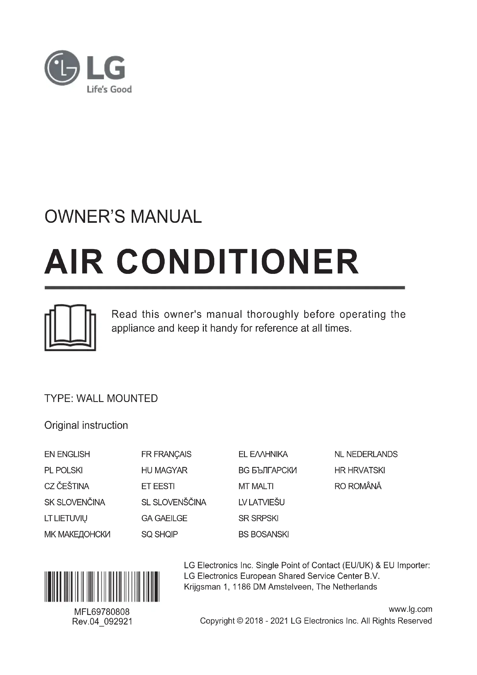 Traduction de l’instruction originale Lisez attentivement le manuel du propriétaire avant d'utiliser l'appareil et gardez-le à portée de main pour vous y référer à tout moment.