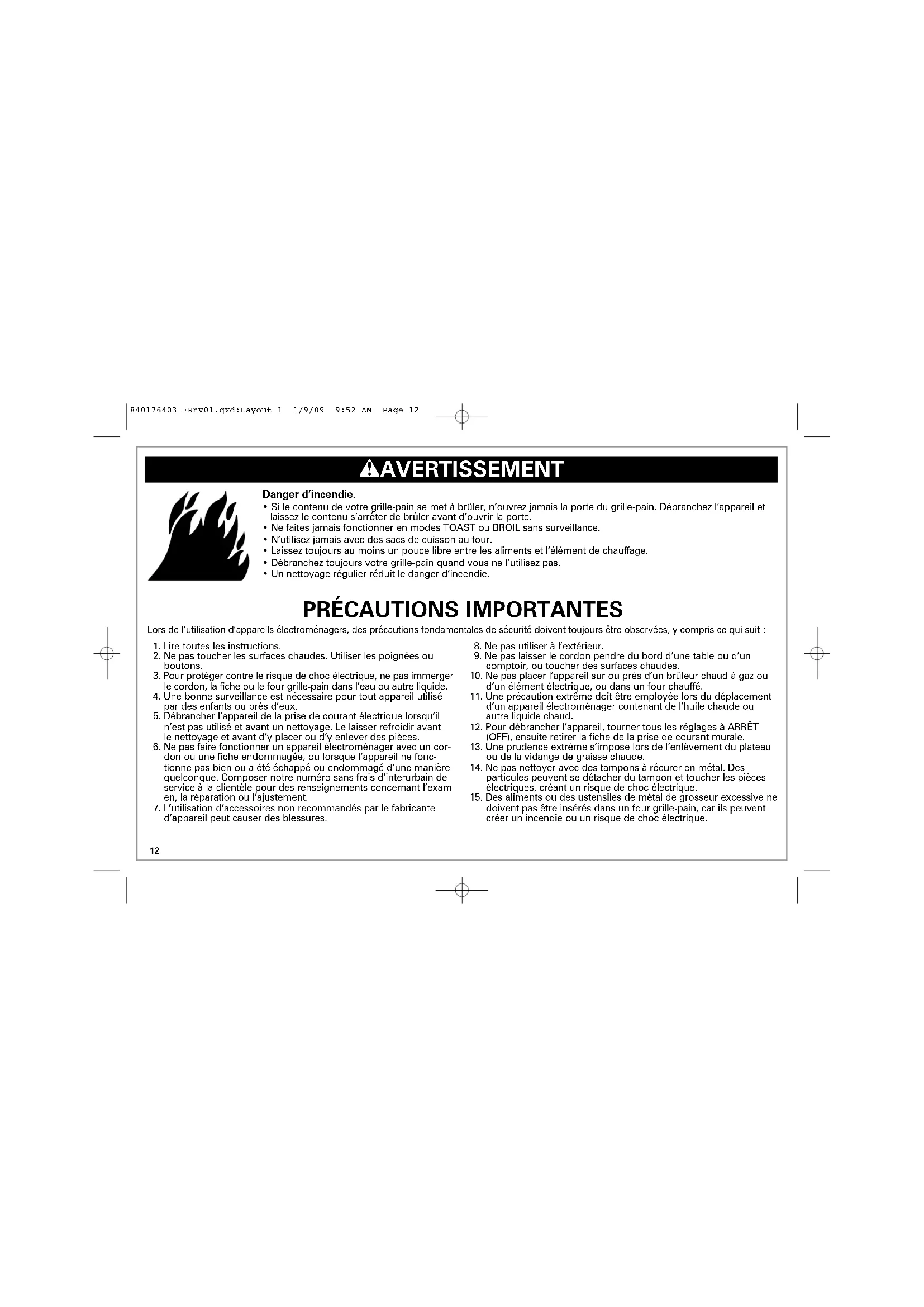 - Un nettoyage régulier réduit le danger d’incendie. 840176403 FRnv01.qxd:Layout 1 1/9/09 9:52 AM Page 1213