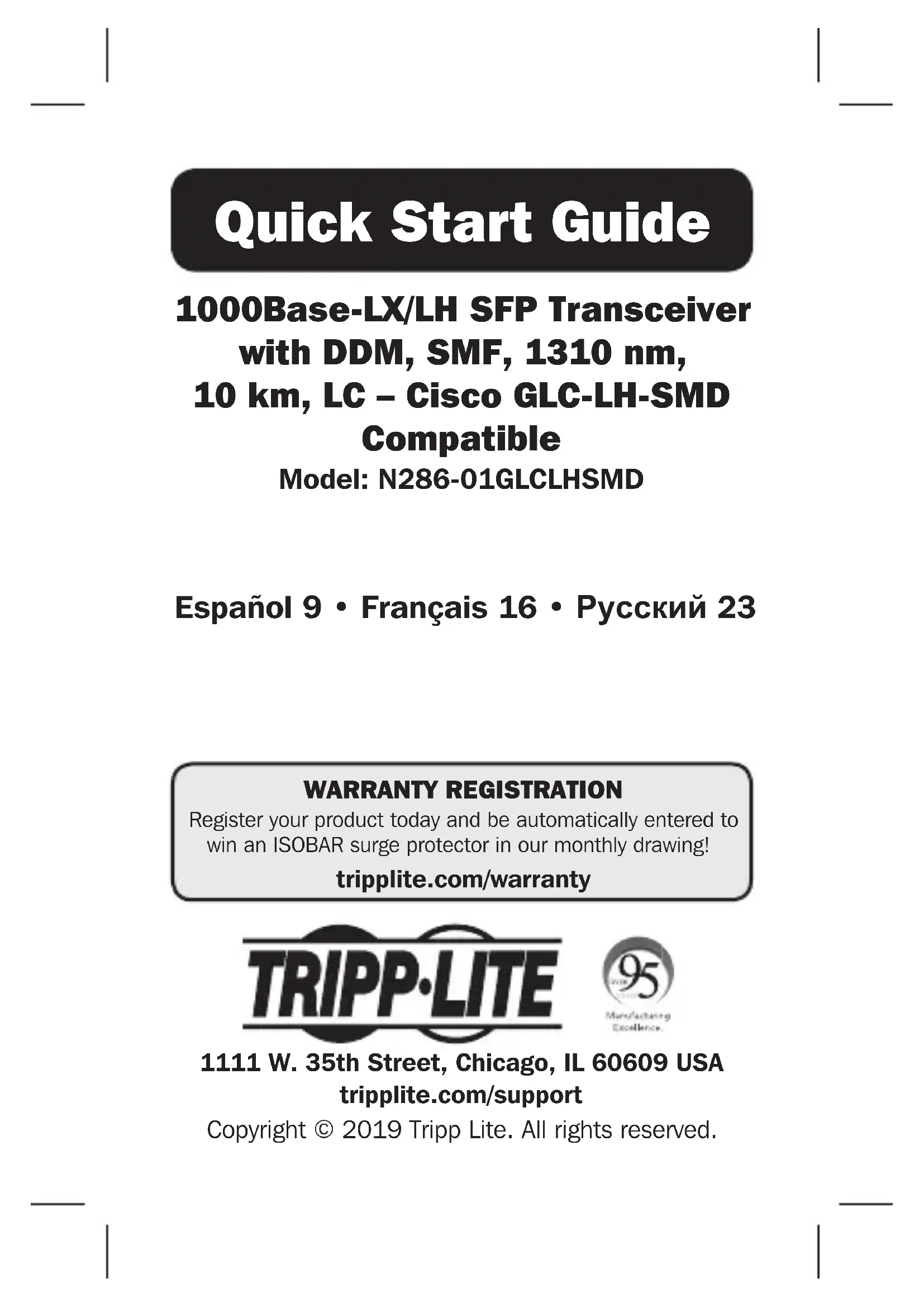 Retrouvez gratuitement la notice de l'appareil N28601GLCLHSMD Tripp Lite au format PDF.