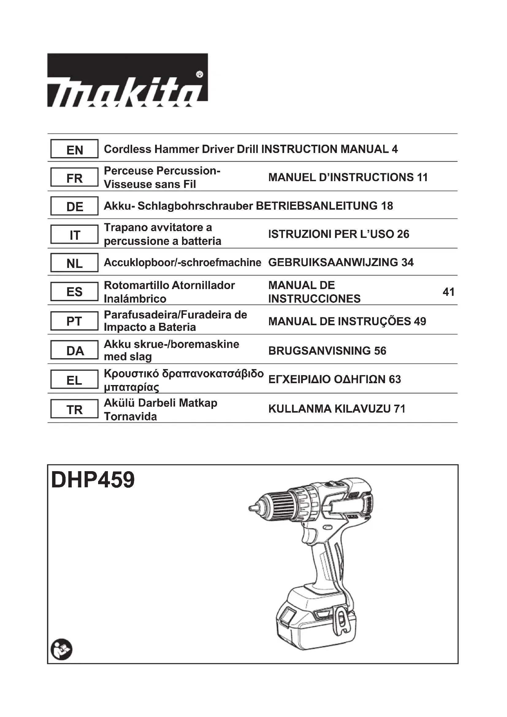 Retrouvez gratuitement la notice de l'appareil DHP459RMJ MAKITA au format PDF.