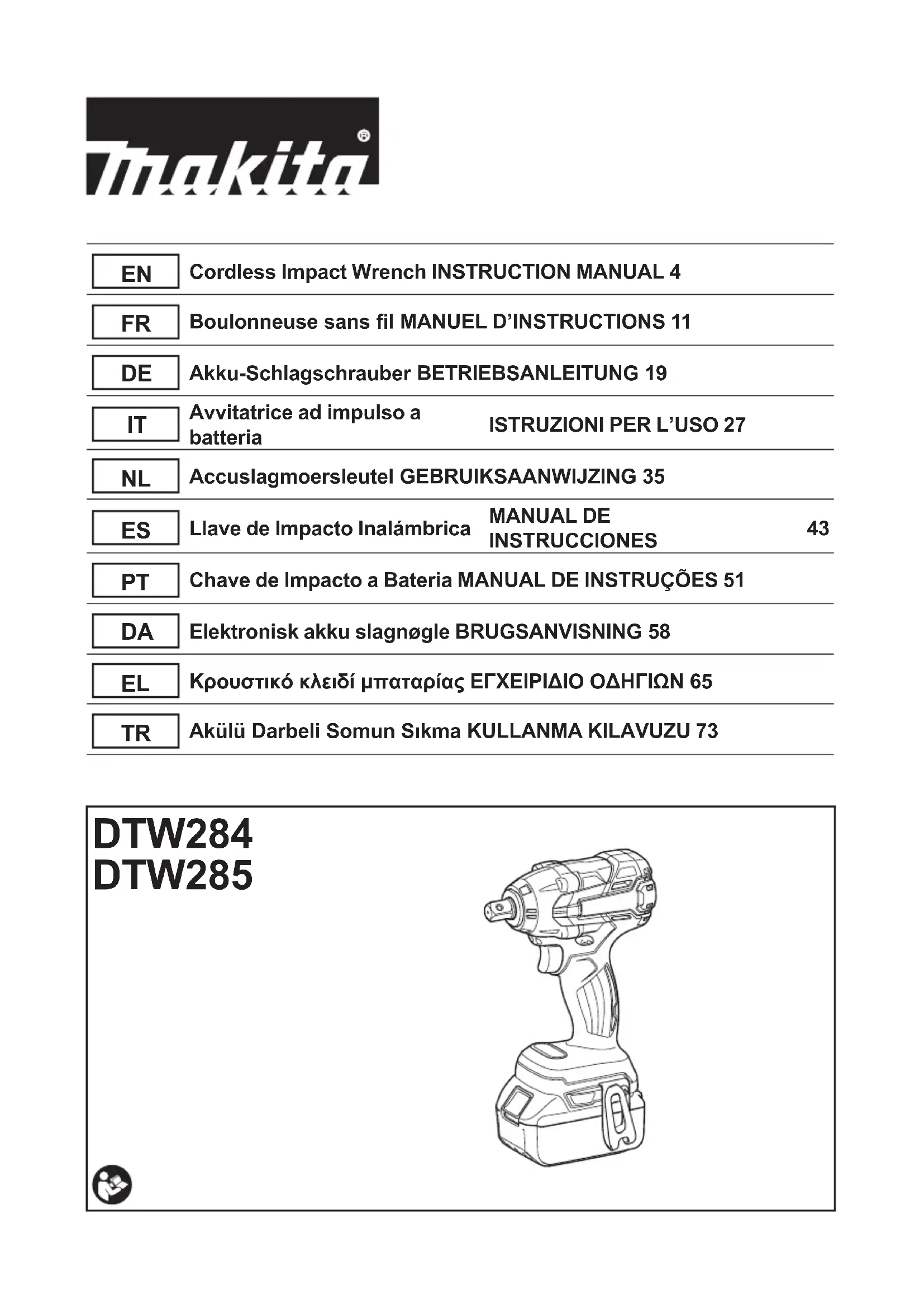 Retrouvez gratuitement la notice de l'appareil DTW285RTJ MAKITA au format PDF.