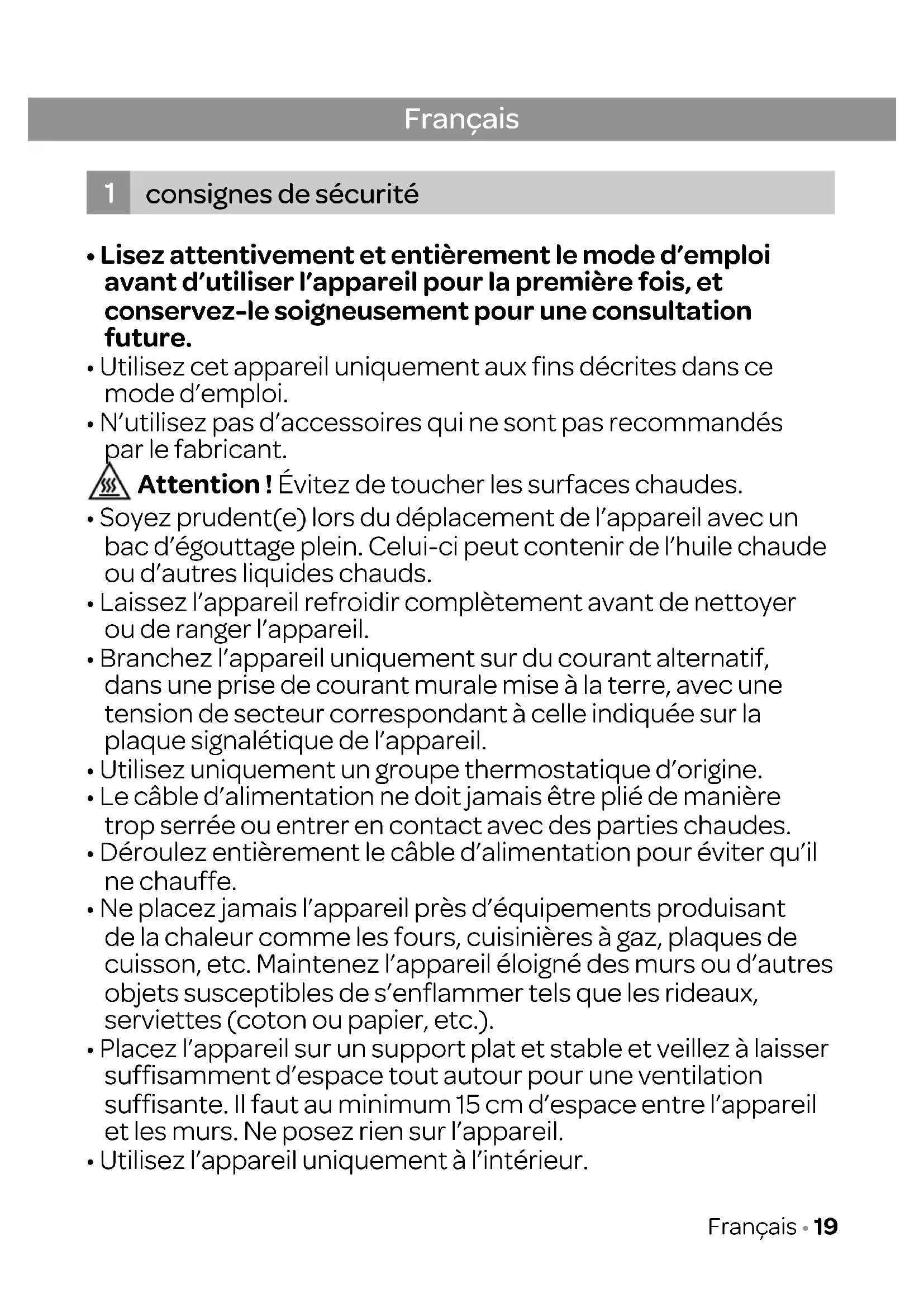 - Utilisez l’appareil uniquement à l’intérieur. Français consignes de sécurité
