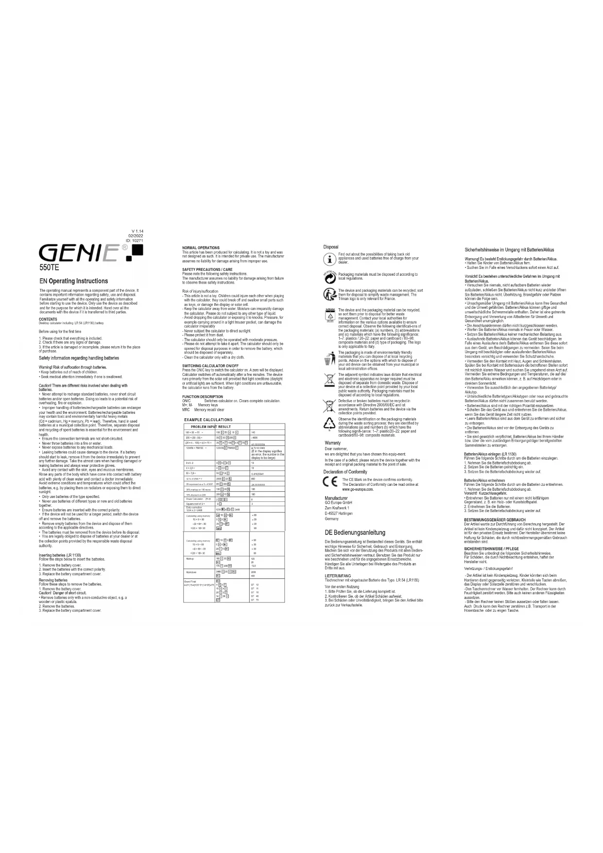 550 TE - Calculatrice Genie - Notice d'utilisation et mode d'emploi gratuit