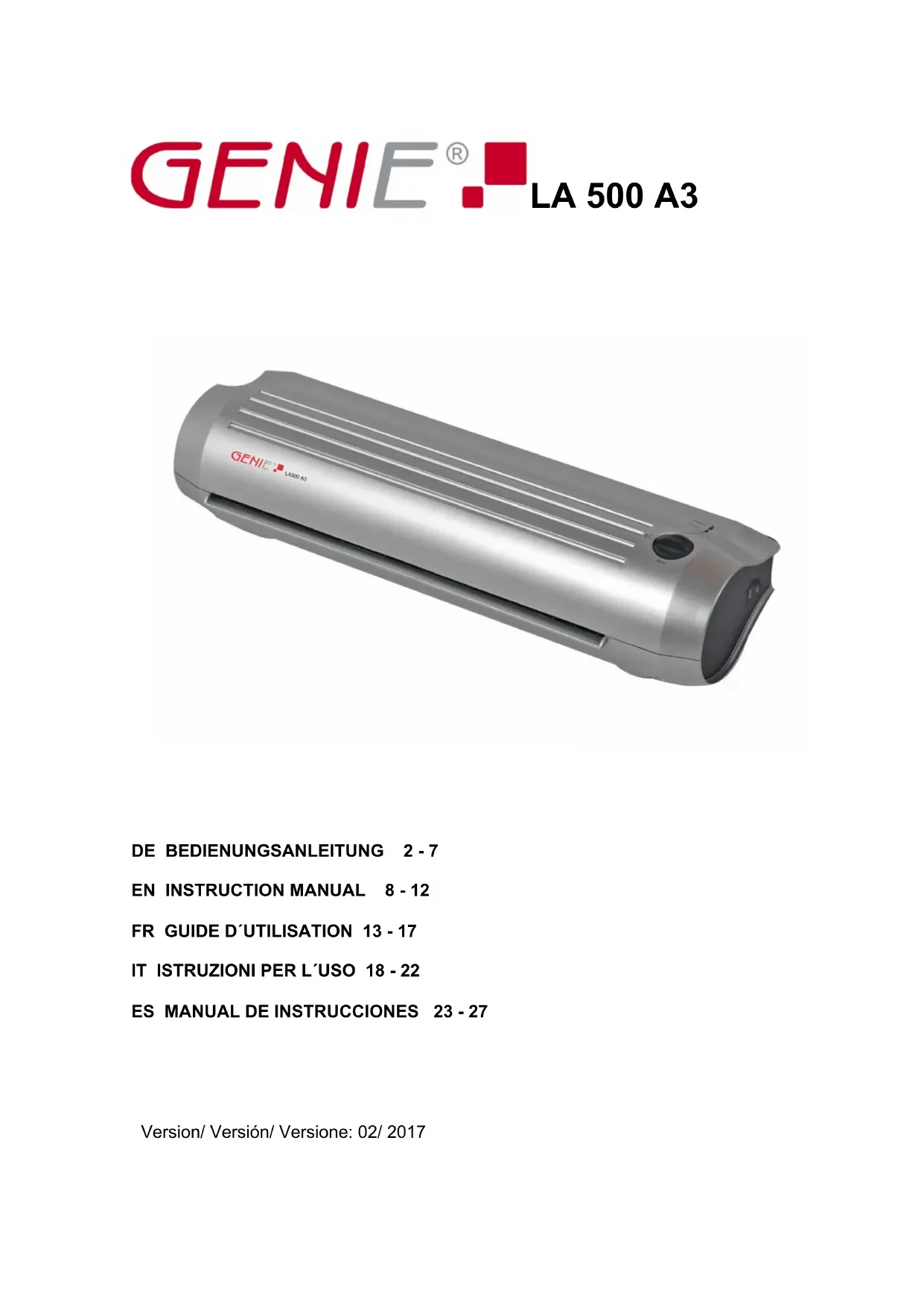 Retrouvez gratuitement la notice de l'appareil LA500 A3 Genie au format PDF.