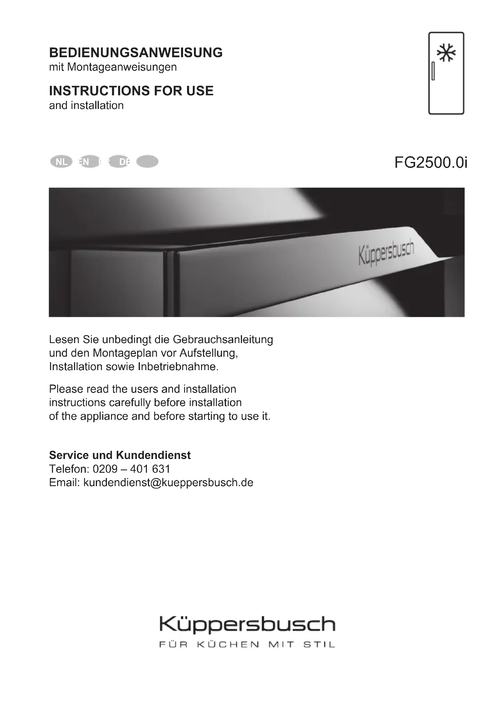 Retrouvez gratuitement la notice de l'appareil FG2500.0i Küppersbusch au format PDF.