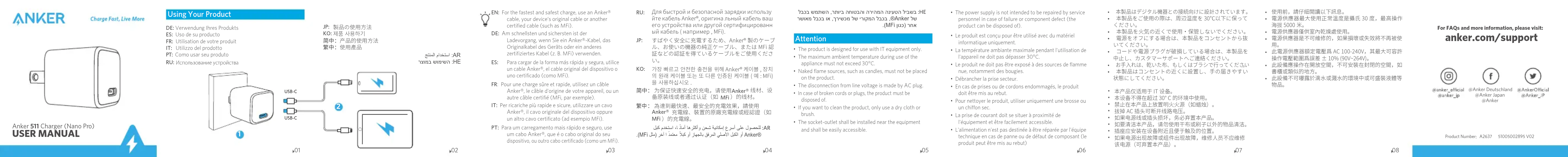 Retrouvez gratuitement la notice de l'appareil 511 Charger (Nano Pro) Anker au format PDF.