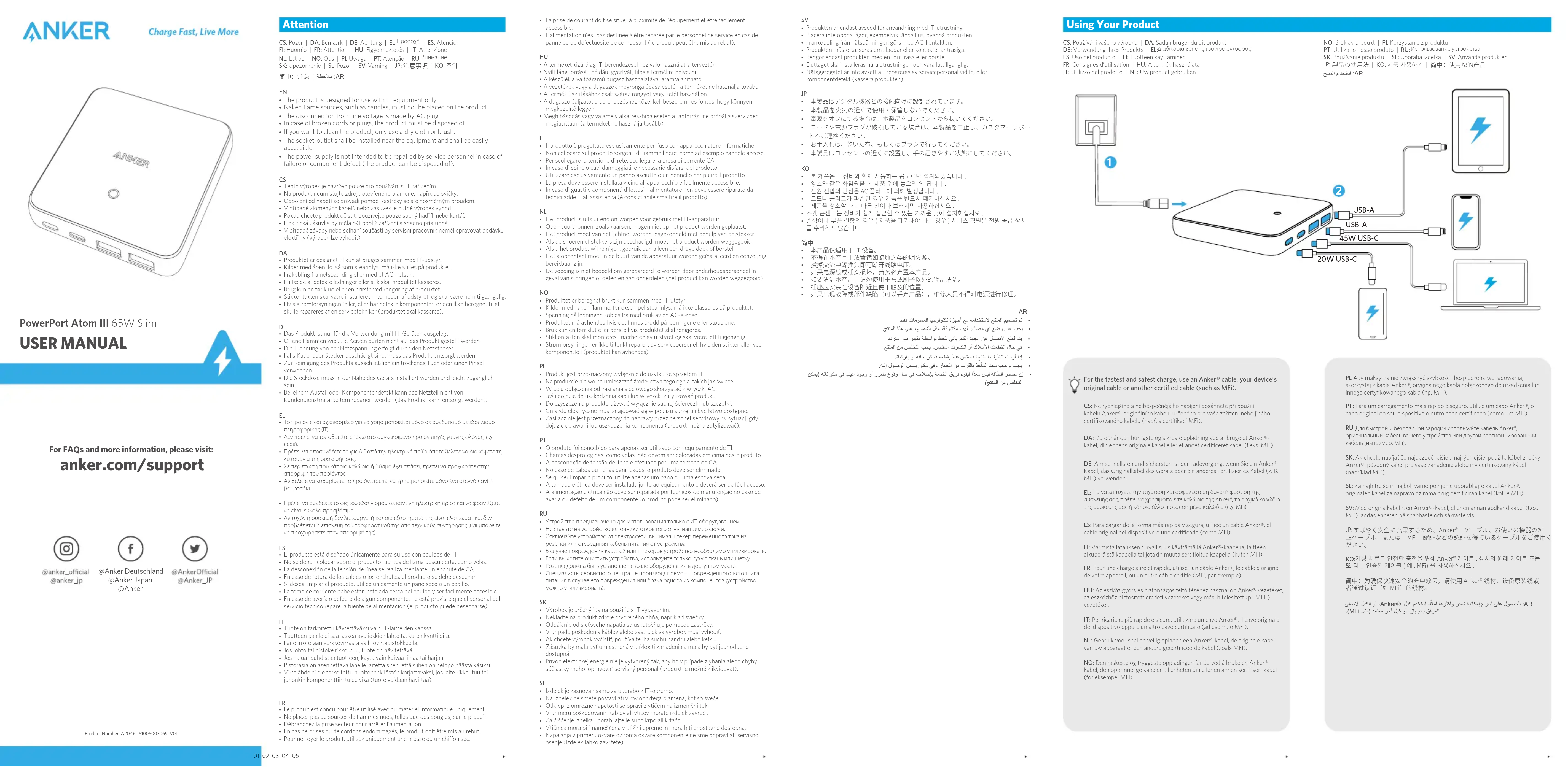 Retrouvez gratuitement la notice de l'appareil PowerPort Atom III 65W Slim Anker au format PDF.