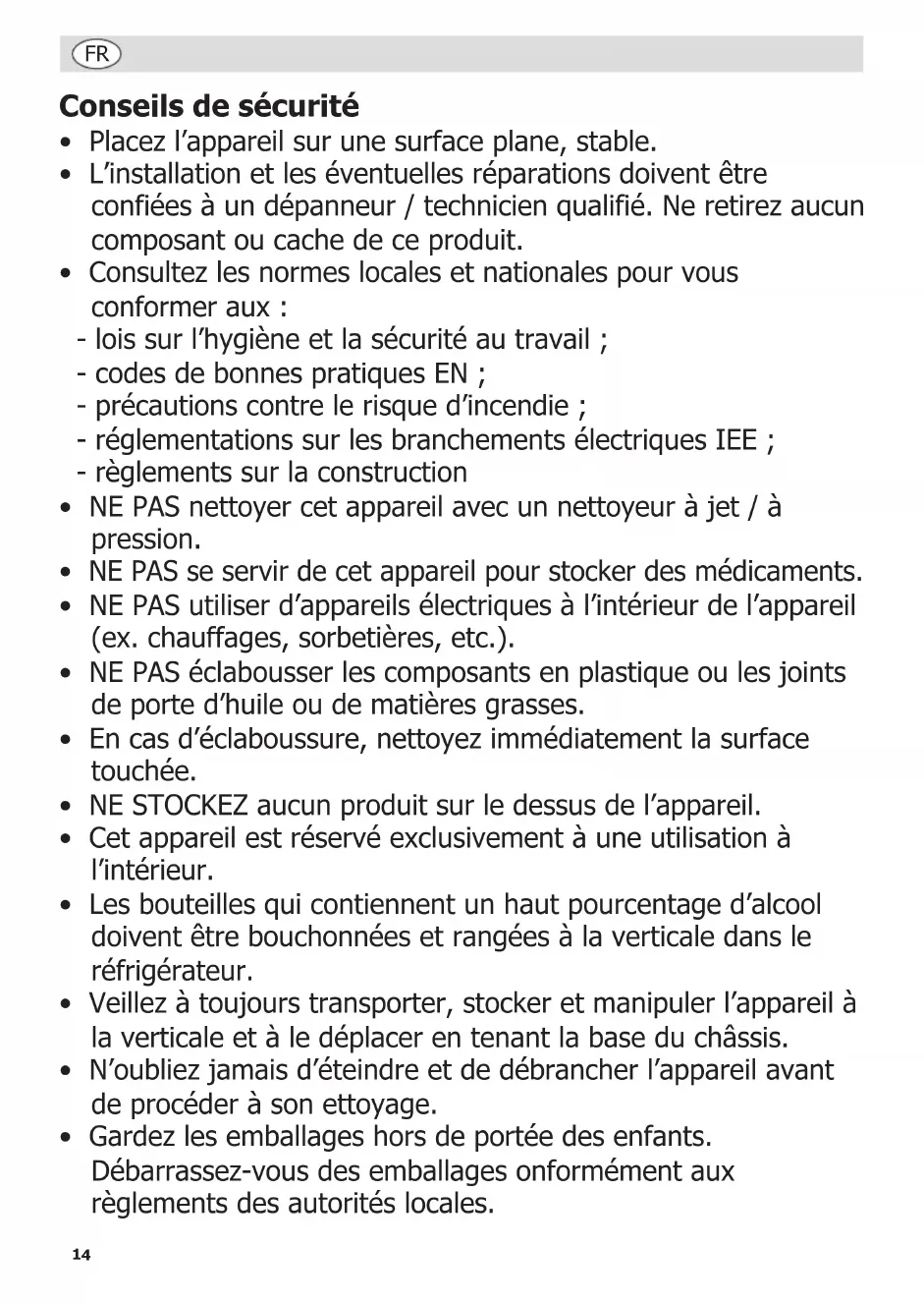 - Ne stockez des aliments dans l’appareil que lorsqu’il a atteint la bonne température de fonctionnement.