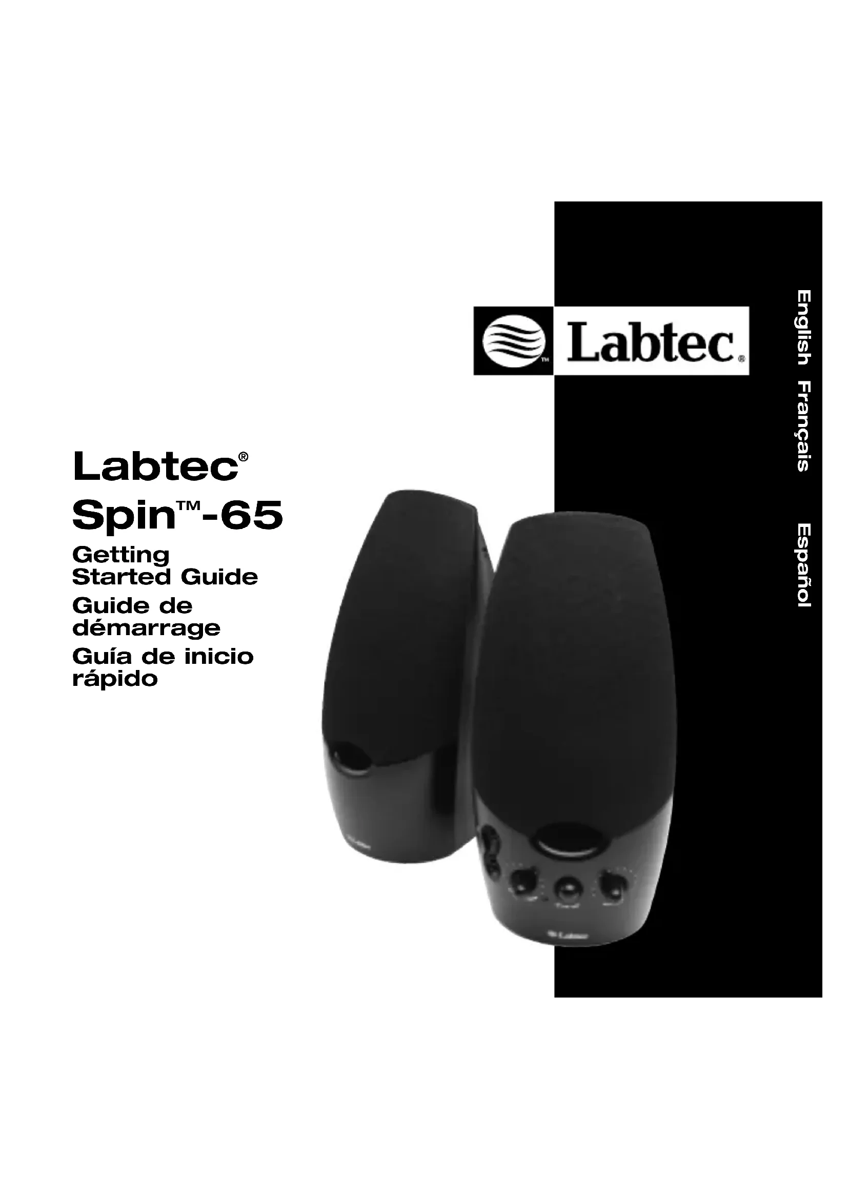 - Conformez-vous à ces instructions avant de connecter les haut-parleurs à une prise murale. ATTENTION: tout matériel électrique présente de graves risques en cas d’utilisation inadaptée. L’utilisation de ce produit doit s’effectuer sous la supervision constante d’un adulte. Veillez à ce que personne n’essaie d’ouvrir les appareils électriques et à ce que les enfants ne manipulent pas les câbles. Garantie du produit Garantie limitée. Labtech certifie que les produits matériels accompagnant cette documentation sont exempts de tout défaut de fabrication et sont garantis pendant une période d’un (1) an à compter de la date d'achat. La garantie Labtec est limitée à l'acheteur initial et ne peut faire l'objet d'un transfert. La présente garantie vous confère certains droits légaux spécifiques. Vous pouvez détenir d'autres droits selon les lois locales. Recours. En cas de rupture de garantie, l’intégralité de la responsabilité de Labtec et votre recours exclusif consisteront, au choix de Labtec, à: (a) réparer ou remplacer le matériel, sous réserve que le matériel soit renvoyé au point de vente ou à tout autre lieu indiqué par Labtec, accompagné d’une copie du justificatif d’achat, ou (b) rembourser le prix d’achat. Tout matériel remplacé sera garanti jusqu'à échéance de la garantie d'origine ou pour une durée de trente (30) jours, selon la période la plus longue. Ces recours sont nuls si la défaillance du matériel est due à un accident, à un mauvais traitement ou à une utilisation inappropriée. GARANTIE LIMITEE. LES GARANTIES PREVUES DANS CET ACCORD REMPLACENT TOUTES LES AUTRES GARANTIES. LABTEC ET SES FOURNISSEURS DECLINENT EXPRESSEMENT TOUTE AUTRE GARANTIE, Y COMPRIS SANS QUE CETTE ENUMERATION SOIT LIMITATIVE, TOUTE GARANTIE IMPLICITE DU CARACTERE ADEQUAT POUR LA COMMERCIALISATION OU UN USAGE PARTICULIER AINSI QUE TOUTE GARANTIE DE NON VIOLATION DES DROITS DE TIERS A L'EGARD DU MATERIEL. AUCUN DISTRIBUTEUR, AGENT OU EMPLOYE DE LABTEC N'EST AUTORISE A EFFECTUER DES MODIFICATIONS, DES EXTENSIONS OU DES AJOUTS DANS CETTE GARANTIE. Certaines juridictions ne reconnaissent pas les limitations de durée des garanties implicites; il est donc possible que la limitation susmentionnée ne s’applique pas à votre cas. LIMITES DE RESPONSABILITE. EN AUCUN CAS LABTEC OU SES FOURNISSEURS NE SAURAIENT ETRE TENUS RESPONSABLES A L'EGARD DES COÛTS D'APPROVISIONNEMENT EN PRODUITS OU SERVICES DE REMPLACEMENT, DU MANQUE A GAGNER, DE LA PERTE D'INFORMATIONS OU DE DONNEES, OU DE TOUT AUTRE DOMMAGE PARTICULIER, INDIRECT, CONSECUTIF OU ACCIDENTEL DECOULANT DE QUELQUE FAÇON QUE CE SOIT DE LA VENTE, DE L'UTILISATION OU DE L'IMPOSSIBILITE D'UTILISER UN PRODUIT OU UN SERVICE LABTEC, MEME SI LABTEC A ETE INFORME DE L'EVENTUALITE DE TELS DOMMAGES. LA RESPONSABILITE DE LABTEC ET DE SES FOURNISSEURS NE SAURAIT EN AUCUN CAS DEPASSER LE MONTANT EFFECTIVEMENT DEBOURSE POUR L'ACQUISITION DES PRODUITS OU SERVICES LABTEC MIS EN CAUSE. Certaines juridictions n’autorisent pas l’exclusion ou la limitation des dommages accessoires ou consécutifs; il est donc possible que la limitation ou l’exclusion susmentionnée ne s’applique pas à votre cas. Les limites susmentionnées ne s'appliqueront pas en cas de préjudice corporel lorsque et dans la mesure où la loi en vigueur prévoit l'existence de cette responsabilité.Español Français English Le agradecemos la adquisición de los altavoces para ordenador Spin™-65 de Labtec®. Los altavoces Labtec se instalan con rapidez, son fáciles de usar y producen un sonido de gran calidad. Conexión de los altavoces Puede conectar los altavoces a la tarjeta de sonido del ordenador o a una fuente de audio externa, como un reproductor de CD, un reproductor de cintas o una radio. Conecte los altavoces, según se muestra a continuación: Nota: si la tarjeta de sonido tiene una salida de nivel de línea y una salida de altavoz, utilice la salida de nivel de línea. Ajuste del volumen por primera vez