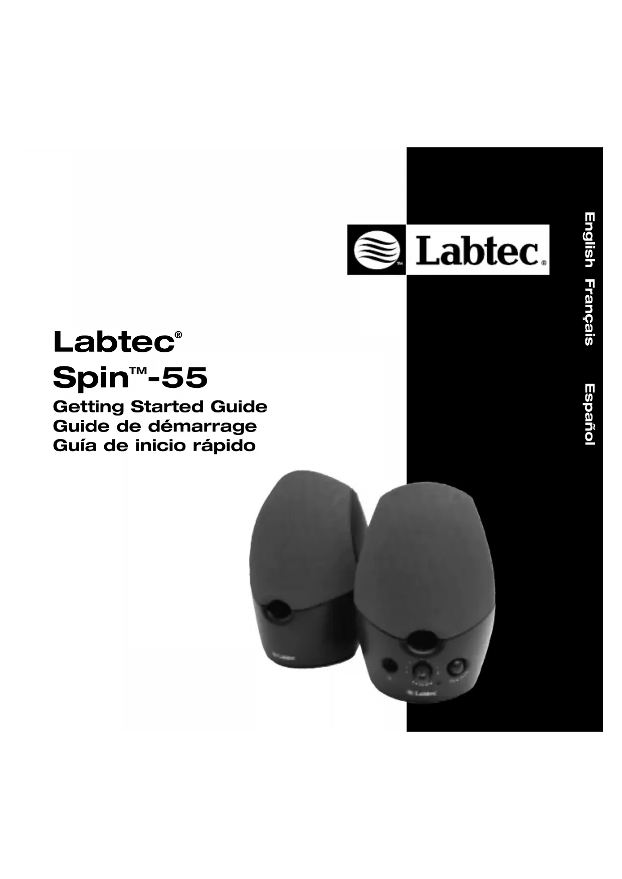 - Conformez-vous à ces instructions avant de connecter les haut-parleurs à une prise murale. ATTENTION: tout matériel électrique présente de graves risques en cas d’utilisation inadaptée. L’utilisation de ce produit doit s’effectuer sous la supervision constante d’un adulte. Veillez à ce que personne n’essaie d’ouvrir les appareils électriques et à ce que les enfants ne manipulent pas les câbles. Garantie du produit Garantie limitée. Labtech certifie que les produits matériels accompagnant cette documentation sont exempts de tout défaut de fabrication et sont garantis pendant une période d’un (1) an à compter de la date d'achat. La garantie Labtec est limitée à l'acheteur initial et ne peut faire l'objet d'un transfert. La présente garantie vous confère certains droits légaux spécifiques. Vous pouvez détenir d'autres droits selon les lois locales. Recours. En cas de rupture de garantie, l’intégralité de la responsabilité de Labtec et votre recours exclusif consisteront, au choix de Labtec, à: (a) réparer ou remplacer le matériel, sous réserve que le matériel soit renvoyé au point de vente ou à tout autre lieu indiqué par Labtec, accompagné d’une copie du justificatif d’achat, ou (b) rembourser le prix d’achat. Tout matériel remplacé sera garanti jusqu'à échéance de la garantie d'origine ou pour une durée de trente (30) jours, selon la période la plus longue. Ces recours sont nuls si la défaillance du matériel est due à un accident, à un mauvais traitement ou à une utilisation inappropriée. GARANTIE LIMITEE. LES GARANTIES PREVUES DANS CET ACCORD REMPLACENT TOUTES LES AUTRES GARANTIES. LABTEC ET SES FOURNISSEURS DECLINENT EXPRESSEMENT TOUTE AUTRE GARANTIE, Y COMPRIS SANS QUE CETTE ENUMERATION SOIT LIMITATIVE, TOUTE GARANTIE IMPLICITE DU CARACTERE ADEQUAT POUR LA COMMERCIALISATION OU UN USAGE PARTICULIER AINSI QUE TOUTE GARANTIE DE NON VIOLATION DES DROITS DE TIERS A L'EGARD DU MATERIEL. AUCUN DISTRIBUTEUR, AGENT OU EMPLOYE DE LABTEC N'EST AUTORISE A EFFECTUER DES MODIFICATIONS, DES EXTENSIONS OU DES AJOUTS DANS CETTE GARANTIE. Certaines juridictions ne reconnaissent pas les limitations de durée des garanties implicites; il est donc possible que la limitation susmentionnée ne s’applique pas à votre cas. LIMITES DE RESPONSABILITE. EN AUCUN CAS LABTEC OU SES FOURNISSEURS NE SAURAIENT ETRE TENUS RESPONSABLES A L'EGARD DES COÛTS D'APPROVISIONNEMENT EN PRODUITS OU SERVICES DE REMPLACEMENT, DU MANQUE A GAGNER, DE LA PERTE D'INFORMATIONS OU DE DONNEES, OU DE TOUT AUTRE DOMMAGE PARTICULIER, INDIRECT, CONSECUTIF OU ACCIDENTEL DECOULANT DE QUELQUE FAÇON QUE CE SOIT DE LA VENTE, DE L'UTILISATION OU DE L'IMPOSSIBILITE D'UTILISER UN PRODUIT OU UN SERVICE LABTEC, MEME SI LABTEC A ETE INFORME DE L'EVENTUALITE DE TELS DOMMAGES. LA RESPONSABILITE DE LABTEC ET DE SES FOURNISSEURS NE SAURAIT EN AUCUN CAS DEPASSER LE MONTANT EFFECTIVEMENT DEBOURSE POUR L'ACQUISITION DES PRODUITS OU SERVICES LABTEC MIS EN CAUSE. Certaines juridictions n’autorisent pas l’exclusion ou la limitation des dommages accessoires ou consécutifs; il est donc possible que la limitation ou l’exclusion susmentionnée ne s’applique pas à votre cas. Les limites susmentionnées ne s'appliqueront pas en cas de préjudice corporel lorsque et dans la mesure où la loi en vigueur prévoit l'existence de cette responsabilité.Español Français English Le agradecemos la adquisición de los altavoces para ordenador Spin™-55 de Labtec®. Los altavoces Labtec se instalan con rapidez, son fáciles de usar y producen un sonido de gran calidad. Conexión de los altavoces Puede conectar los altavoces a la tarjeta de sonido del ordenador o a una fuente de audio externa, como un reproductor de CD, un reproductor de cintas o una radio. Conecte los altavoces, según se muestra a continuación: Nota: si la tarjeta de sonido tiene una salida de nivel de línea y una salida de altavoz, utilice la salida de nivel de línea. Ajuste del volumen por primera vez