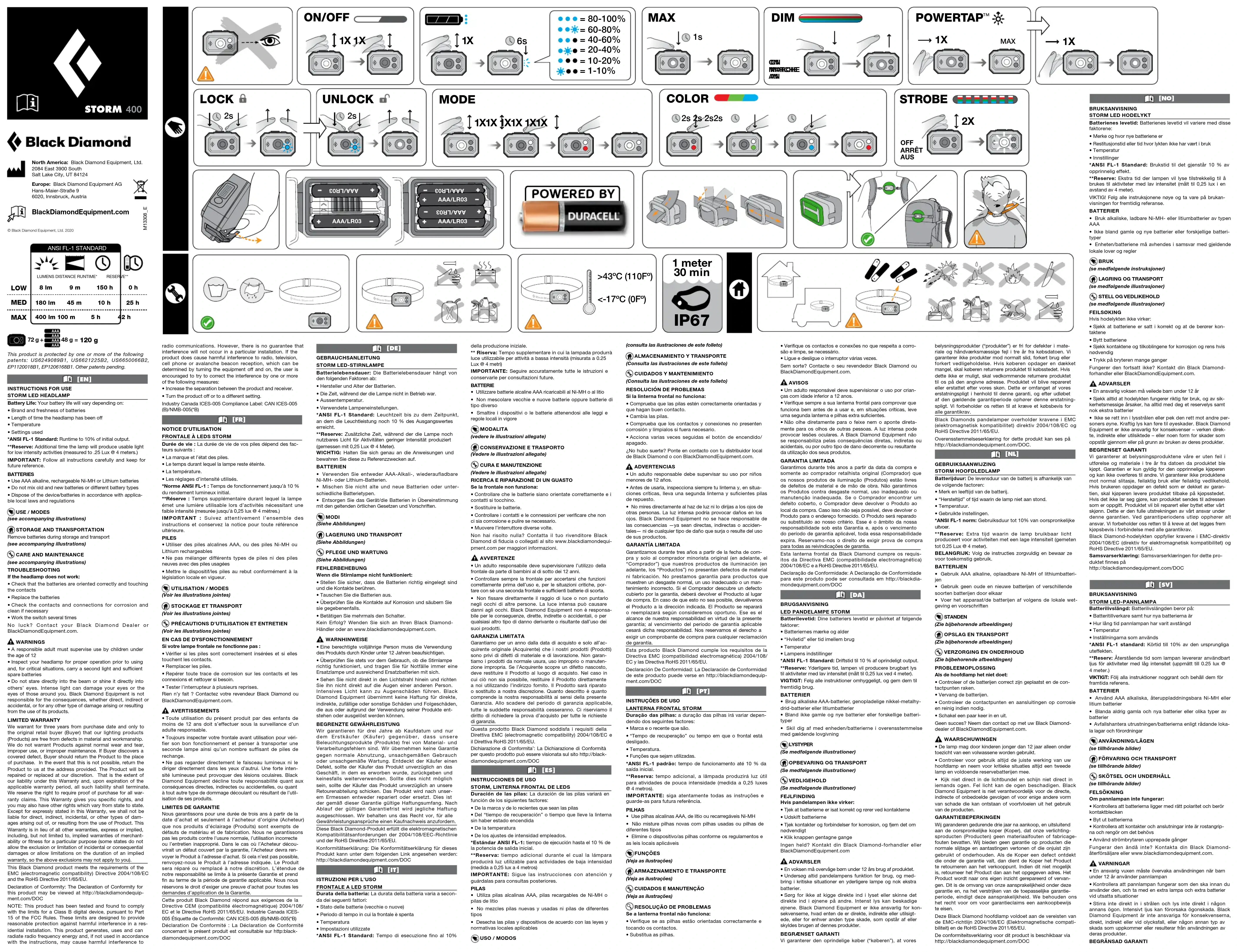 Retrouvez gratuitement la notice de l'appareil Storm 400 Black Diamond au format PDF.