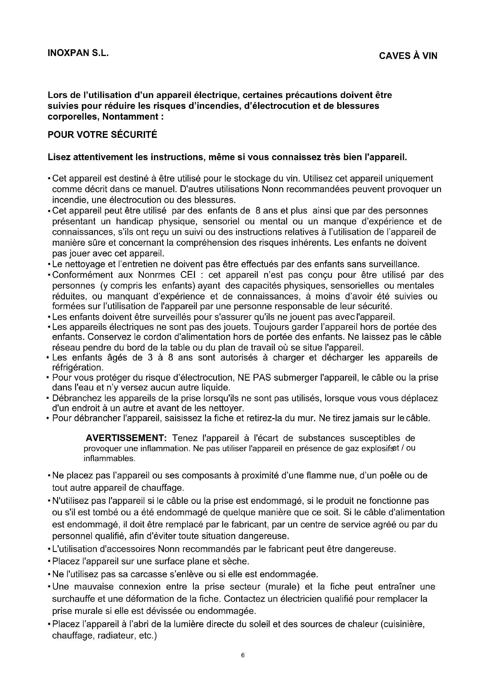 INONXPAN, S. L., est expressément exclu de toute responsabilité concernant des eventuels dommages directs ou indirects infligés à des personnes ou des biens, venant d'une utilisation non-conforme de l'appareil.