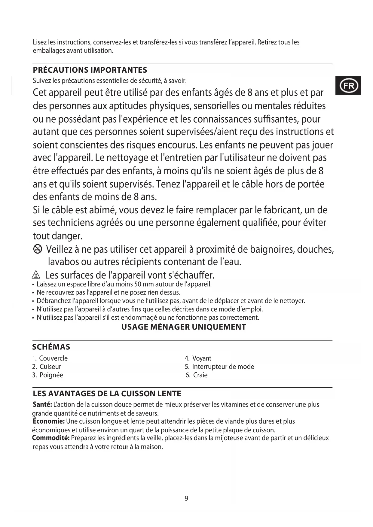 1 pour cuisson lente traditionnelle (généralement 8 à 10 heures). 2 pour cuisson plus rapide (généralement 4 à 5 heures). pour maintenir les aliments au chaud avant de les servir (uniquement après processus complet de cuisson dans la mijoteuse).
