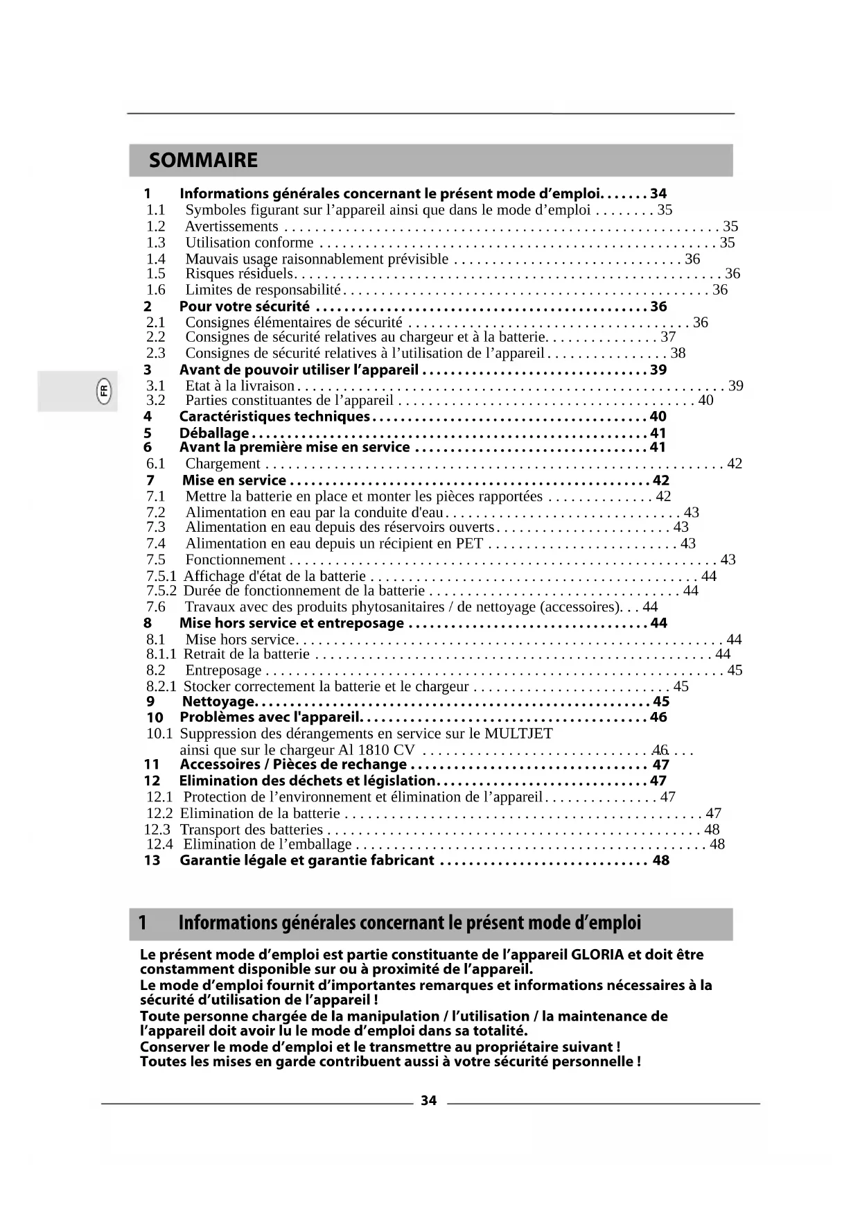 SOMMAIRE 1 Informations générales concernant le présent mode d’emploi... 34
