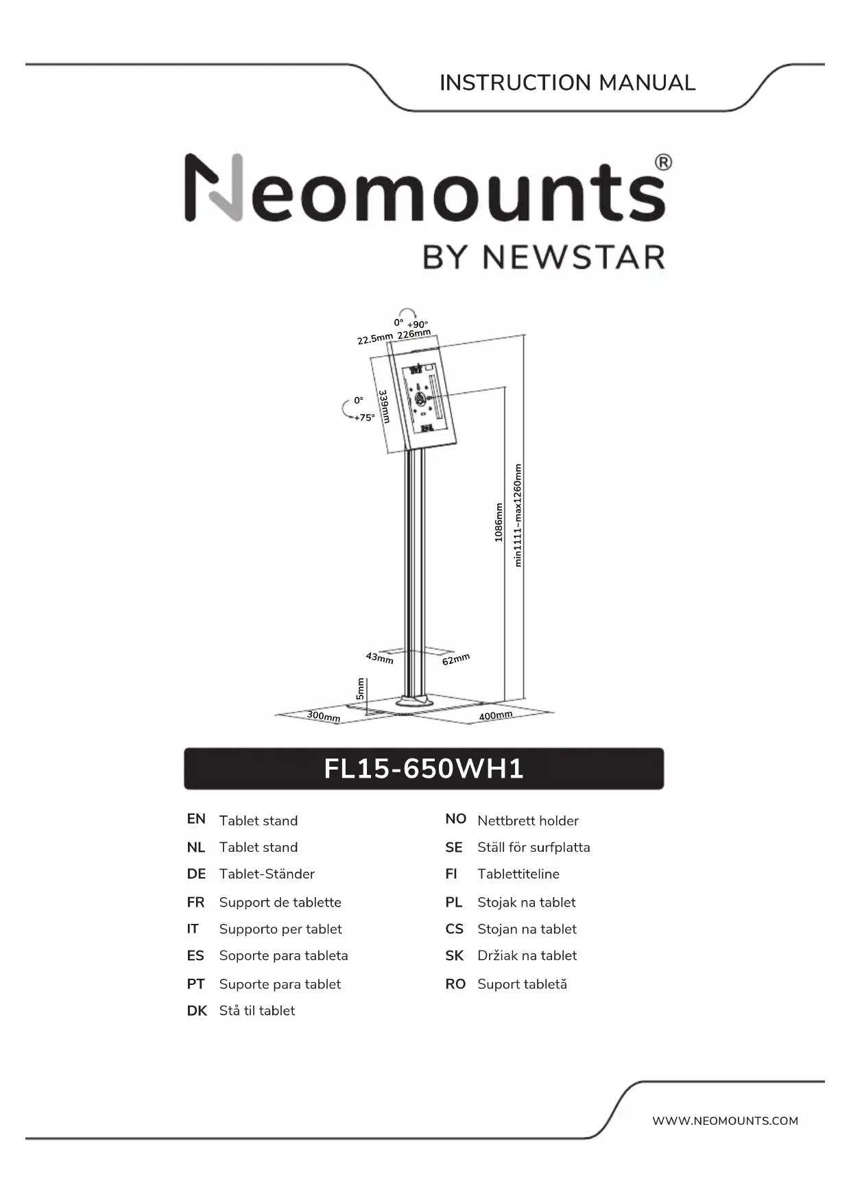 FL15650WH1 - Support de tablette Newstar - Notice d'utilisation et mode d'emploi gratuit