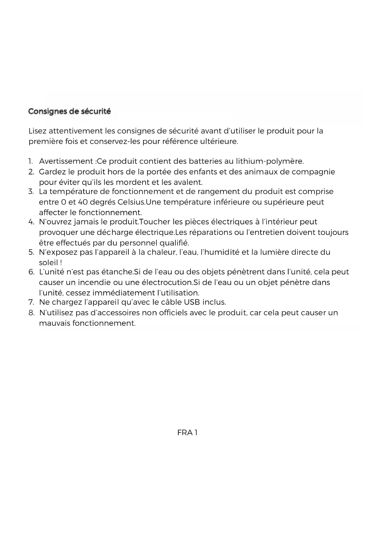 1. Avertissement :Ce produit contient des batteries au lithium-polymère.