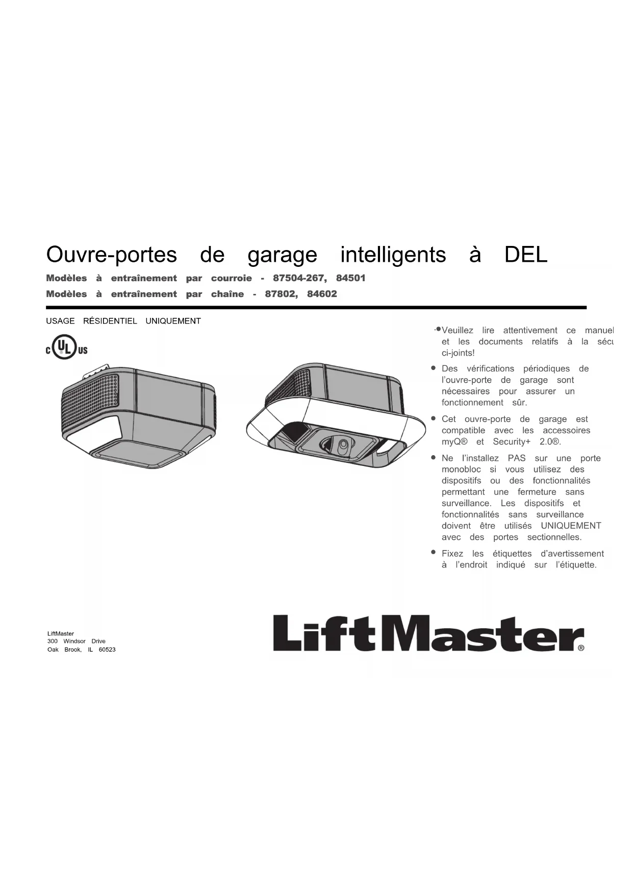 87802 - Porte de garage LIFT-MASTER - Notice d'utilisation et mode d'emploi gratuit