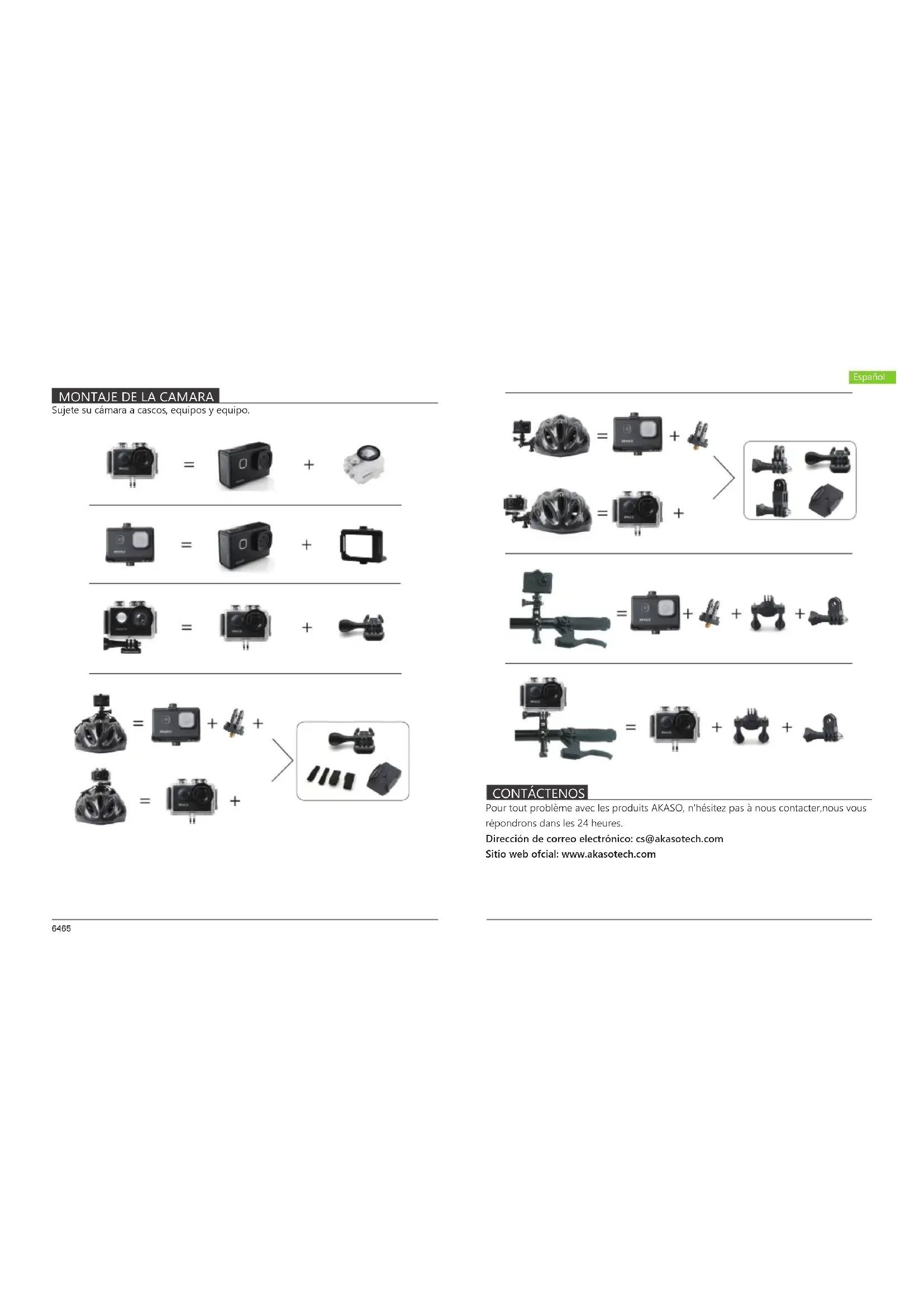 Pour tout problème avec les produits AKASO, n'hésitez pas à nous contacter,nous vous répondrons dans les 24 heures. Dirección de correo electrónico: cs@akasotech.com Sitio web ofcial: www.akasotech.com CONTÁCTENOS EspañolVOTRE EK7000 PRO