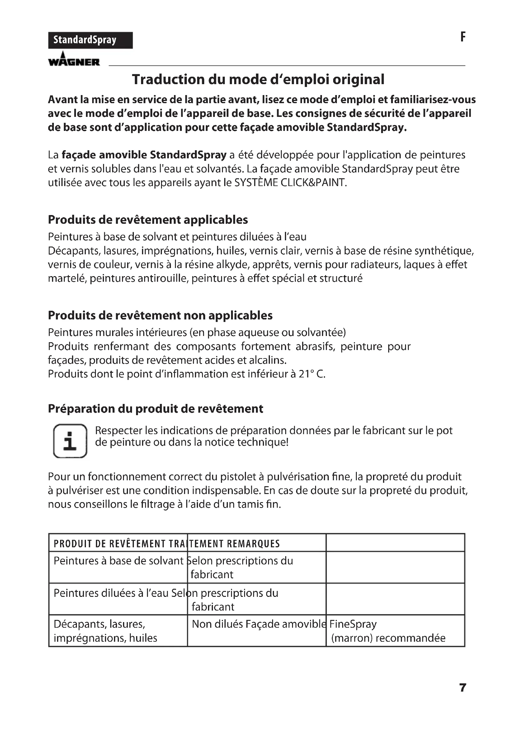 StandardSpray - Jet de peinture WAGNER - Notice d'utilisation et mode d'emploi gratuit