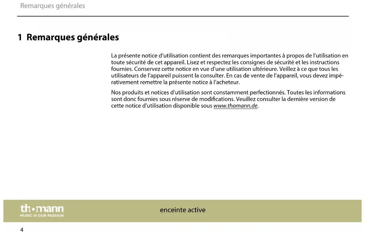 Achat 115 Sub A 31 Remarques générales La présente notice d’utilisation contient des remarques importantes à propos de l’utilisation en toute sécurité de cet appareil. Lisez et respectez les consignes de sécurité et les instructions fournies. Conservez cette notice en vue d’une utilisation ultérieure. Veillez à ce que tous les utilisateurs de l’appareil puissent la consulter. En cas de vente de l’appareil, vous devez impé‐ rativement remettre la présente notice à l’acheteur. Nos produits et notices d’utilisation sont constamment perfectionnés. Toutes les informations sont donc fournies sous réserve de modications. Veuillez consulter la dernière version de cette notice d’utilisation disponible sous www.thomann.de. Remarques générales