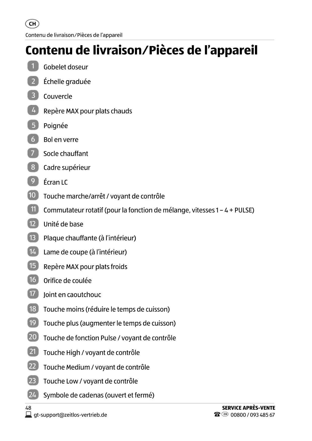 Contenu de livraison⁄Pièces de l’appareil Contenu de livraison/Pièces de l’appareil