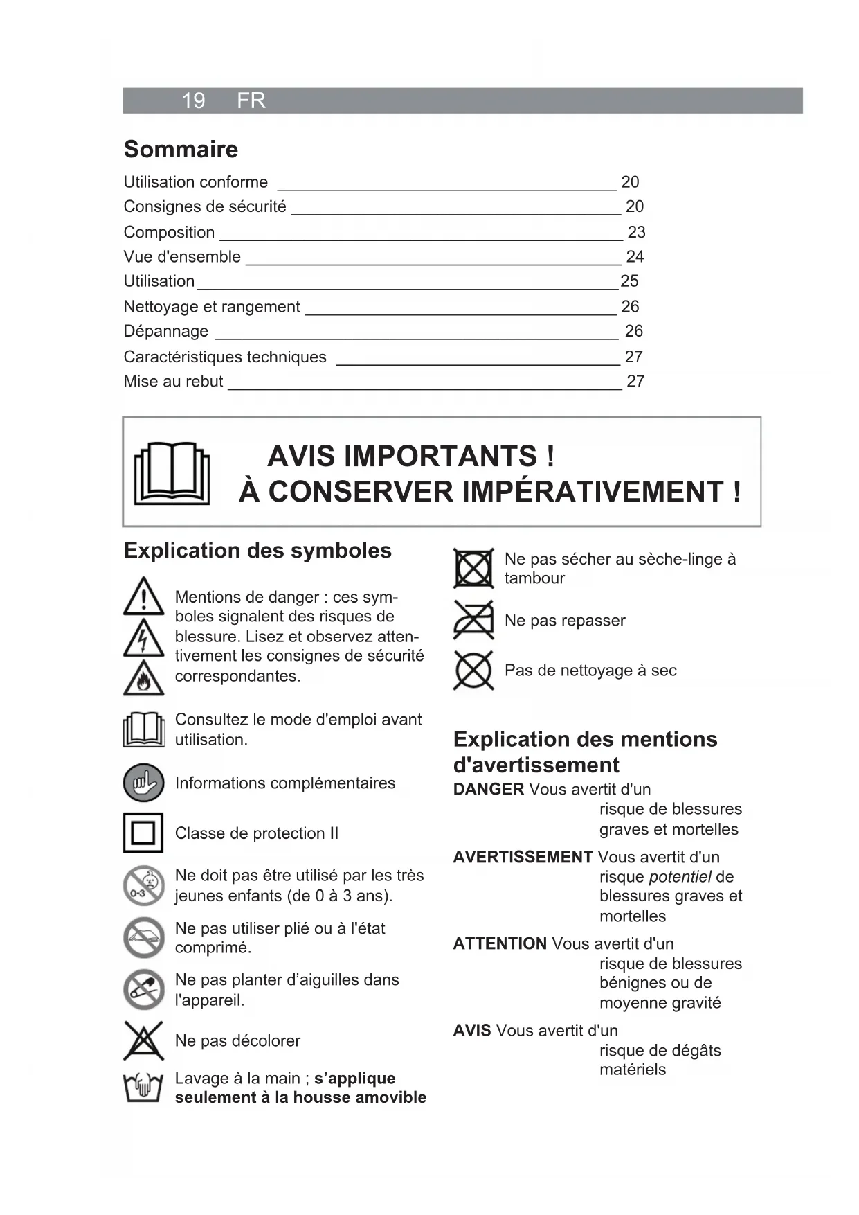 Mode d’emploi à partir de la page 19