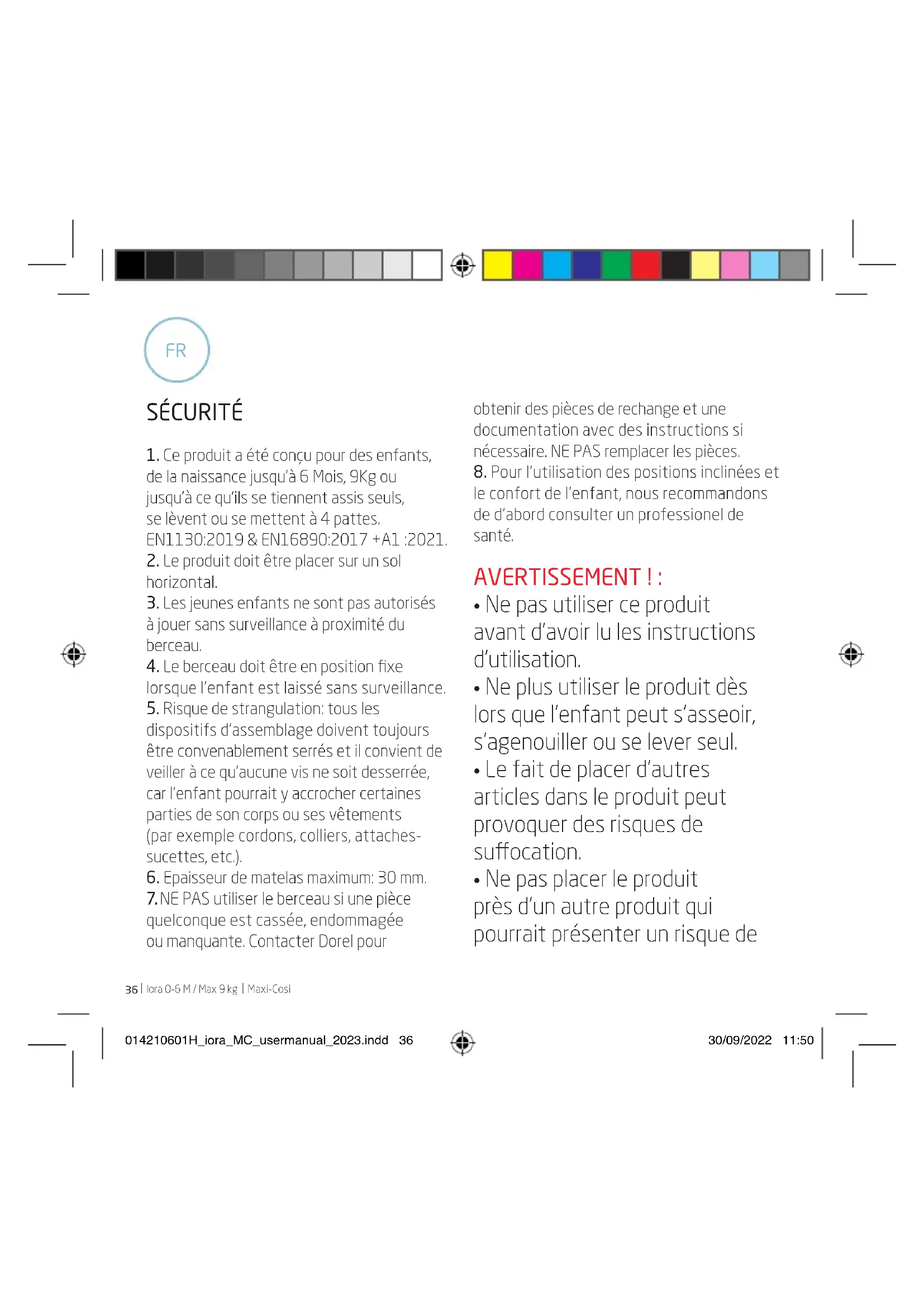de la naissance jusqu’à 6 Mois, 9Kg ou jusqu’à ce qu’ils se tiennent assis seuls, se lèvent ou se mettent à 4 pattes. EN1130:2019 & EN16890:2017 +A1 :2021.