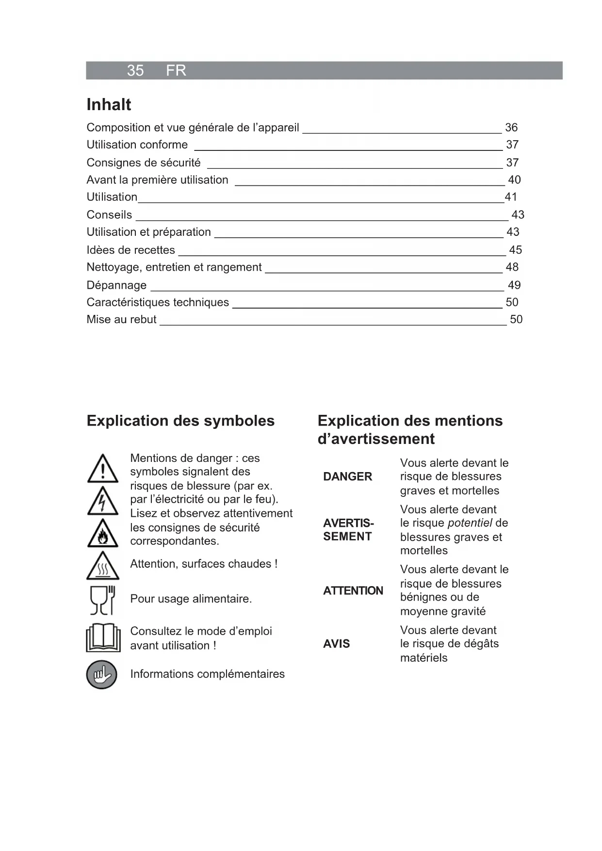 - L‘appareil n‘est pas conçu pour la préparation de plats liquides comme les soupes, les sauces ou les plats uniques en sauce.