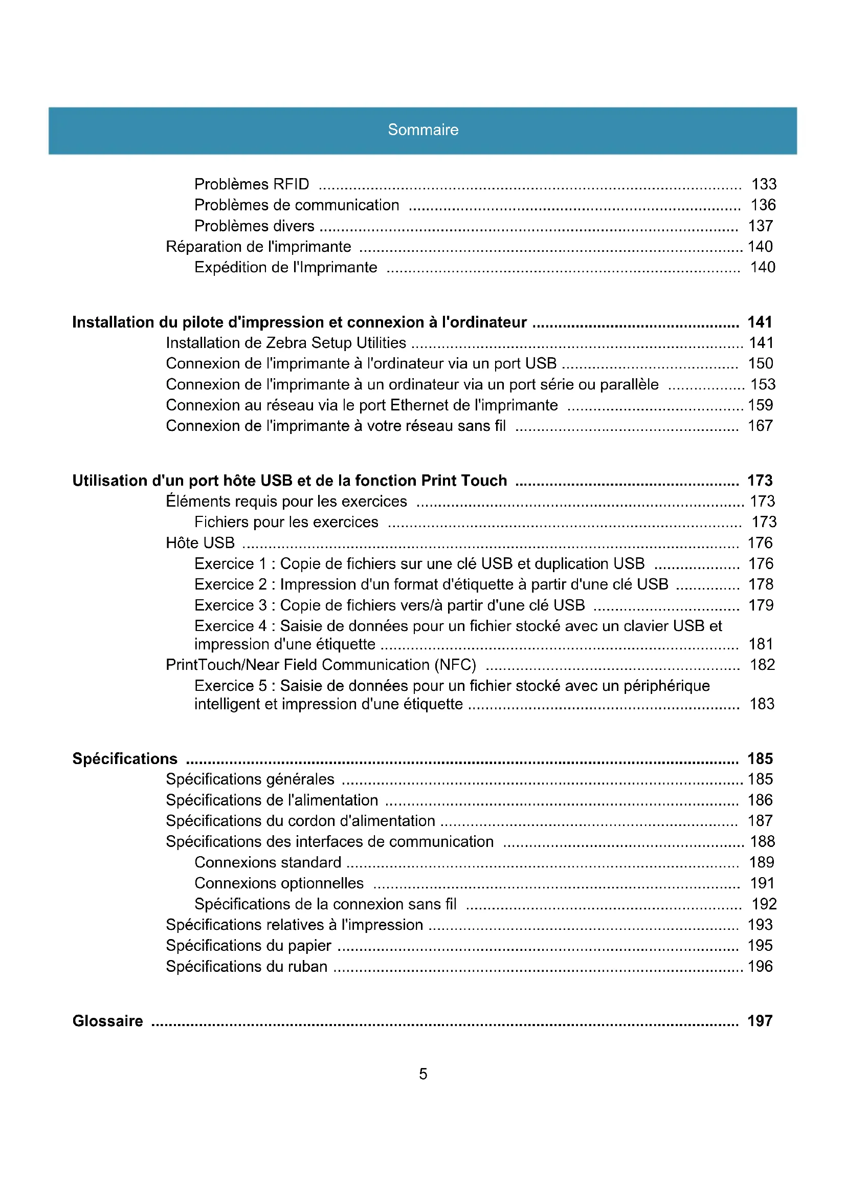 - Installation de Zebra Setup Utilities p. 141