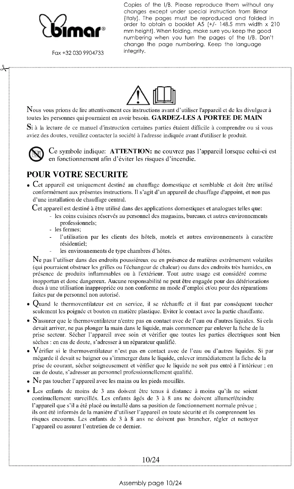 S907.EU - Chauffage Bimar - Notice d'utilisation et mode d'emploi gratuit