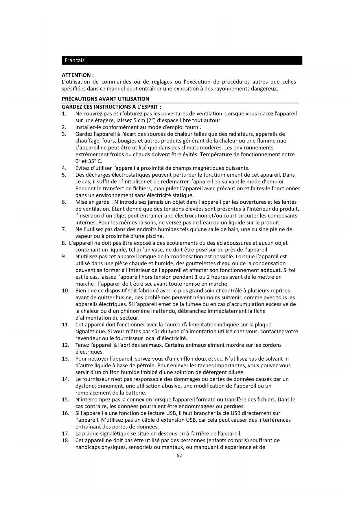15. N’interrompez pas la connexion lorsque l’appareil formate ou transfère des fichiers. Dans le