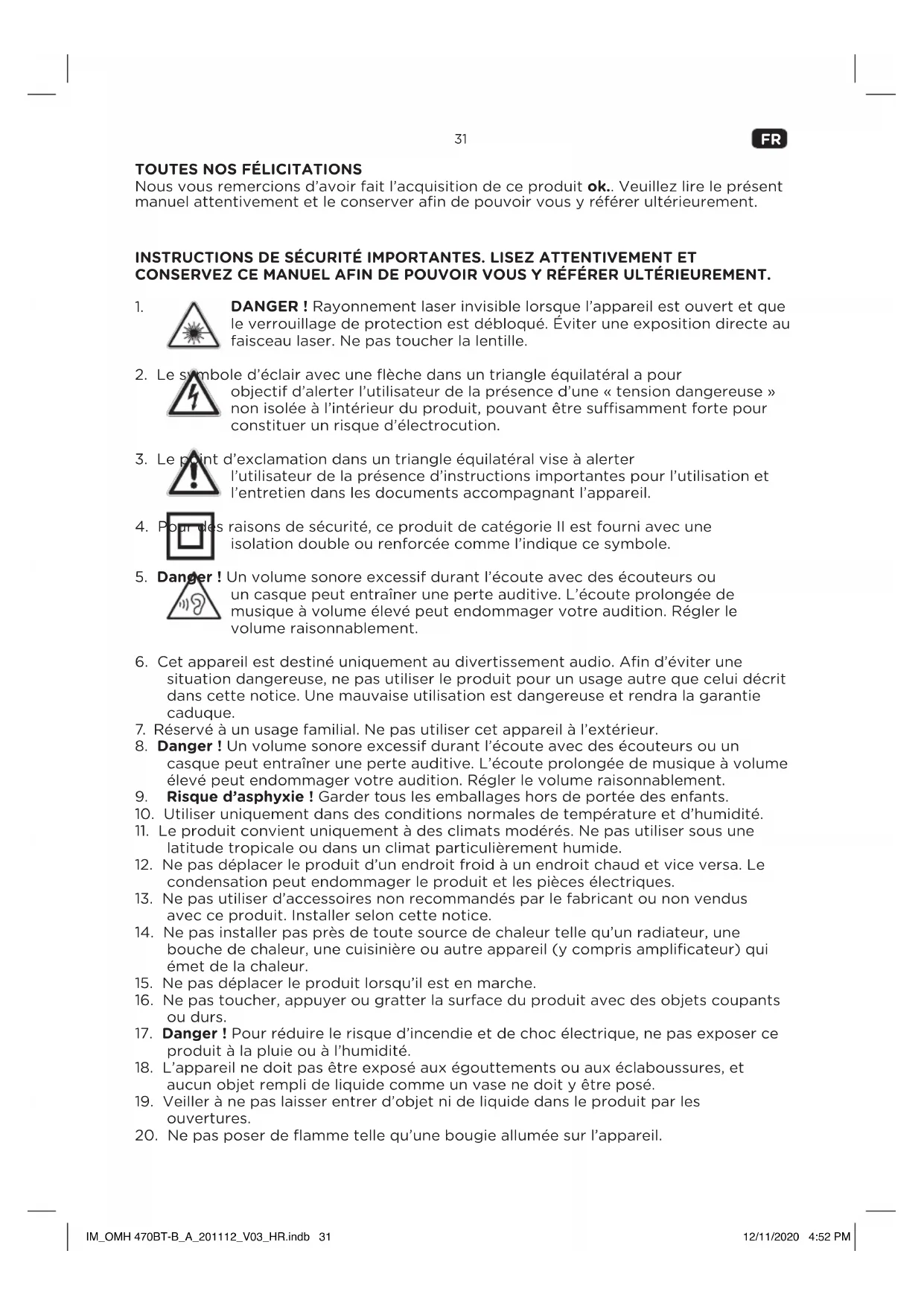 causer de graves brûlures internes en seulement 2 heures et peut conduire à la mort. IM_OMH 470BT-B_A_201112_V03_HR.indb 32IM_OMH 470BT-B_A_201112_V03_HR.indb 32 12/11/2020 4:52 PM12/11/2020 4:52 PM33