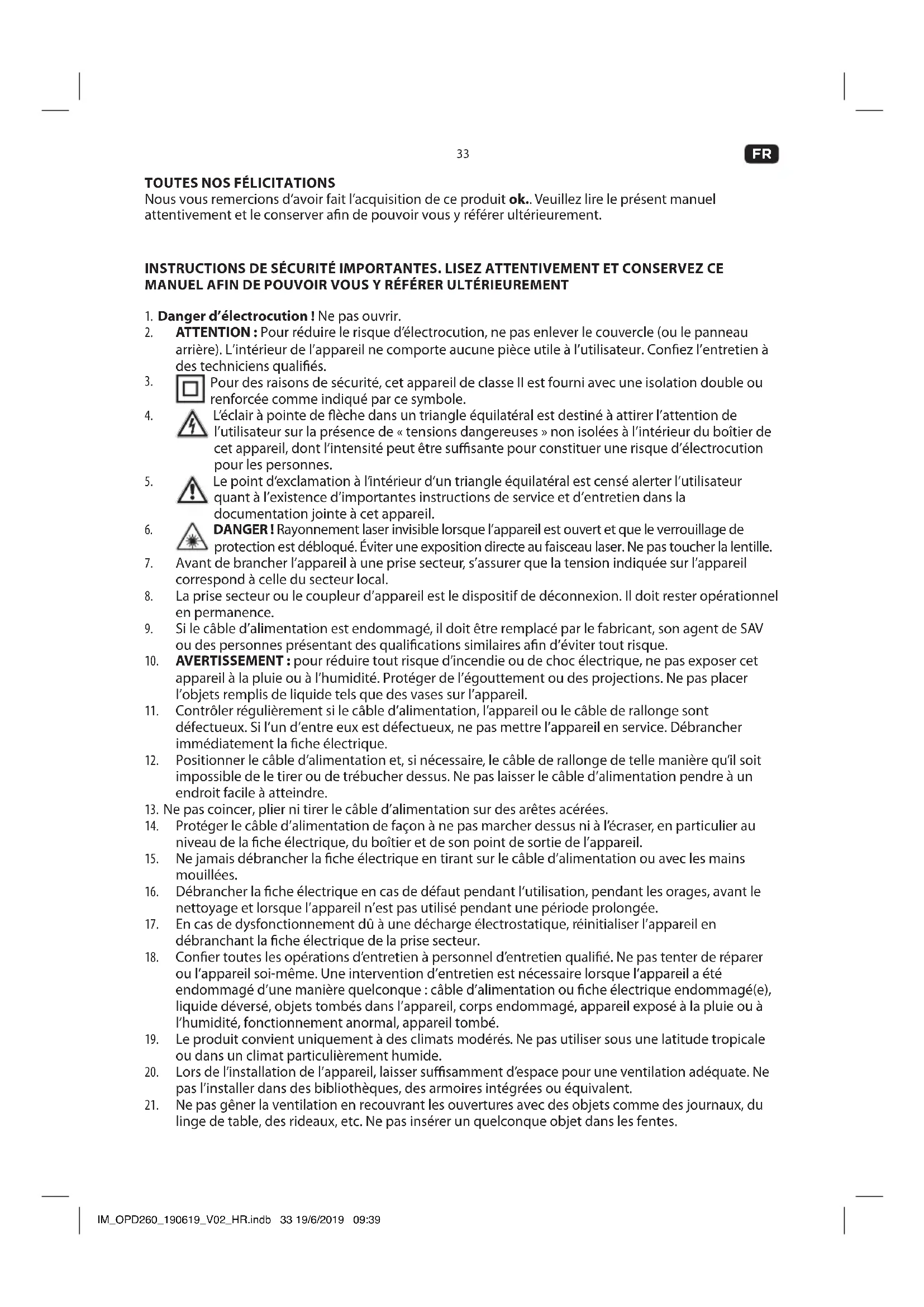 J. Sortie vidéo K. Sortie HDMI L. Cordon d'alimentation avec che M. Sortie SCART IM_OPD260_190619_V02_HR.indb 35 19/6/2019 09:3936 Size = A5