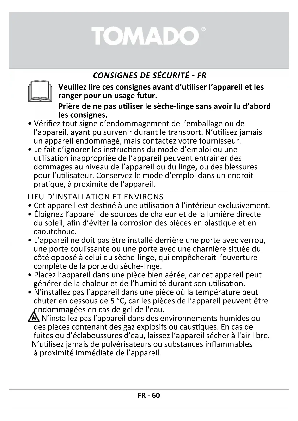 Veuillez lire ces consignes avant d’uliser l’appareil et les ranger pour un usage futur. Prière de ne pas uliser le sèche-linge sans avoir lu d’abord les consignes.