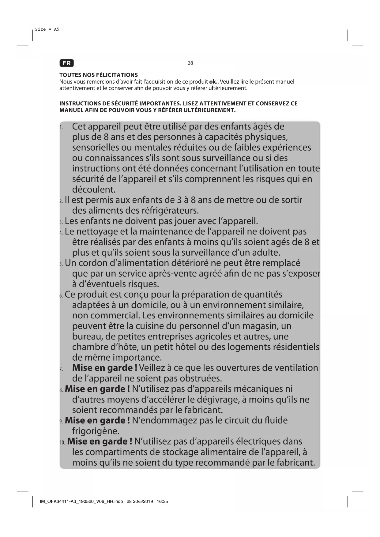 les compartiments de stockage alimentaire de l’appareil, à moins qu’ils ne soient du type recommandé par le fabricant. IM_OFK34411-A3_190520_V06_HR.indb 28 20/5/2019 16:3529