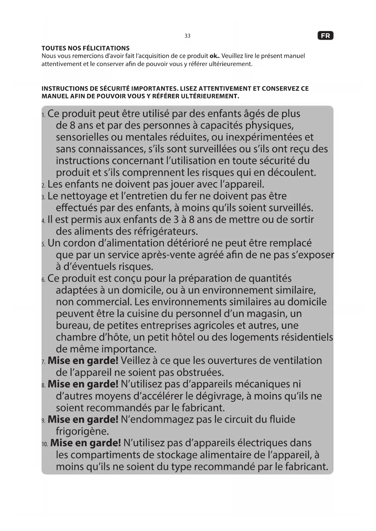 10. Mise en garde! N’utilisez pas d’appareils électriques dans