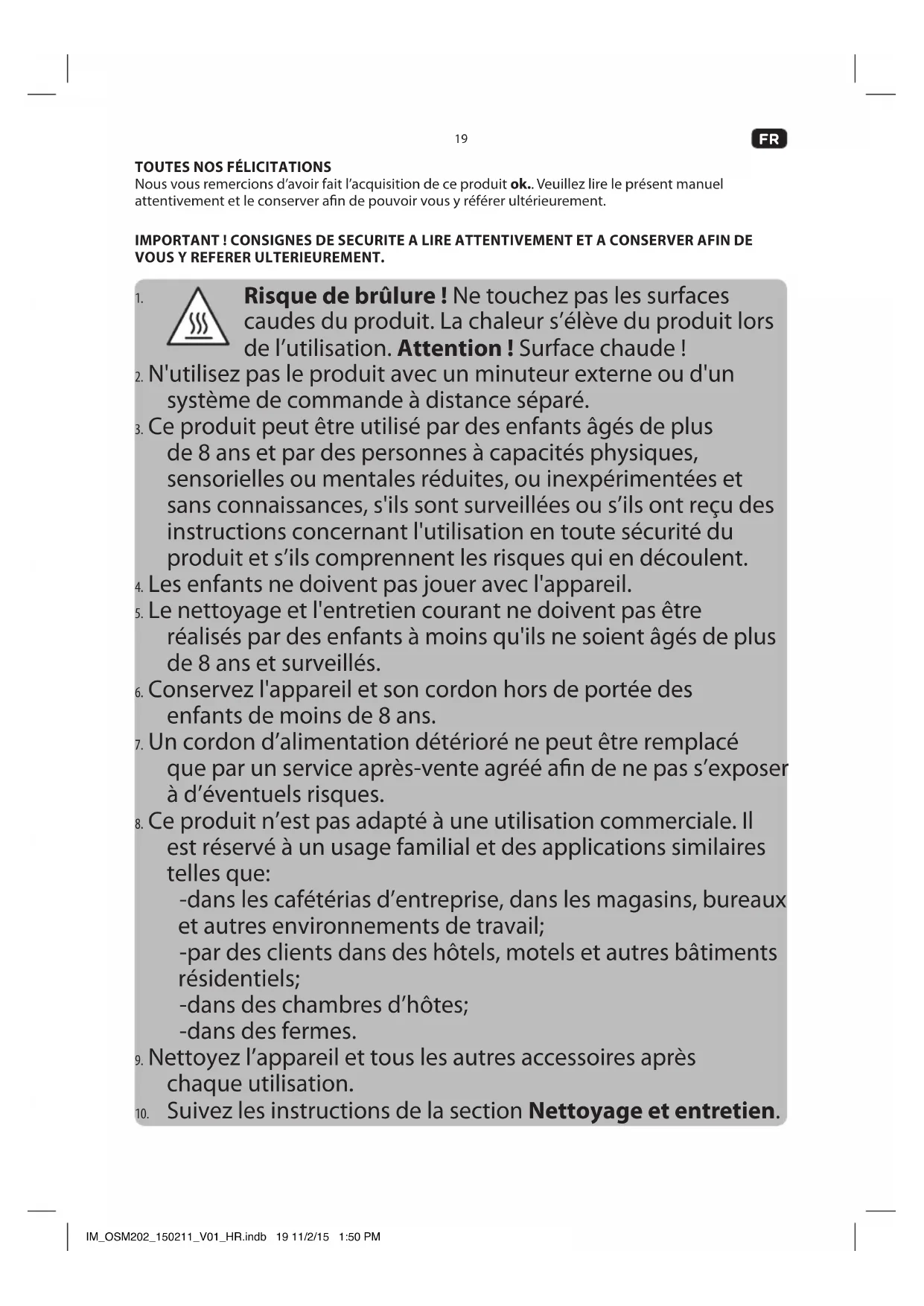 Cet appareil est uniquement conçu pour la préparation des aliments. Toute autre utilisation peut provoquer l’endommagement de l’appareil ou des blessures. IM_OSM202_150211_V01_HR.indb 20 11/2/15 1:50 PM21