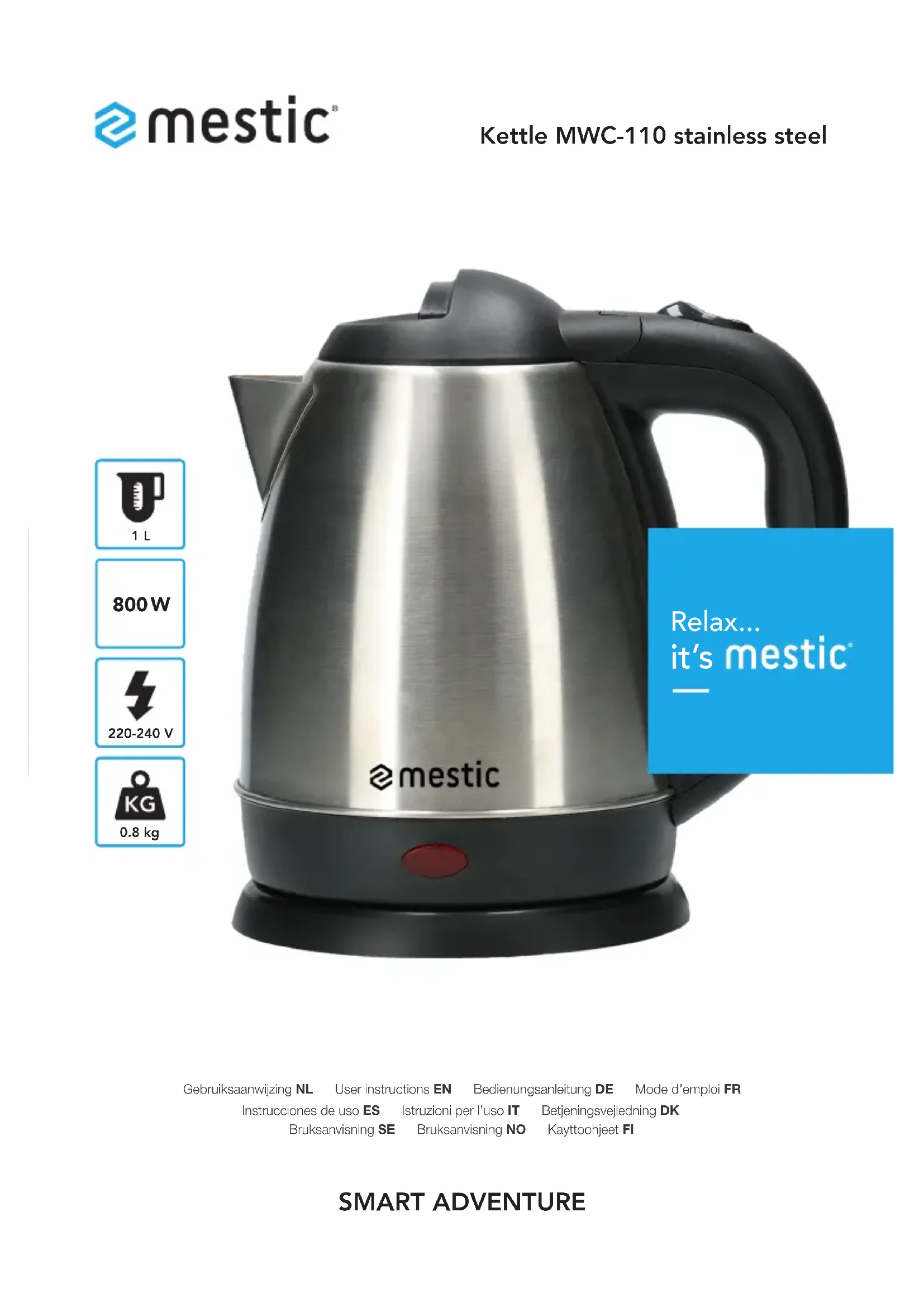 MWC110 - Bouilloire Mestic - Notice d'utilisation et mode d'emploi gratuit